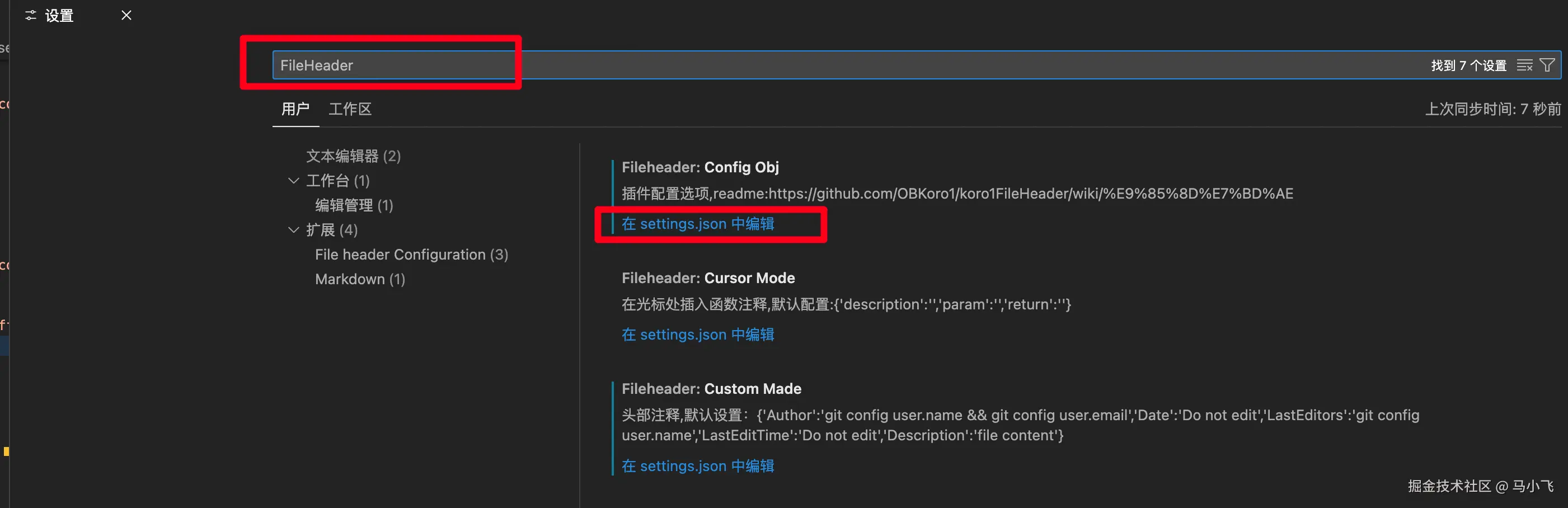 vscode 设置中搜索 FileHeader,点击编辑 setting.json