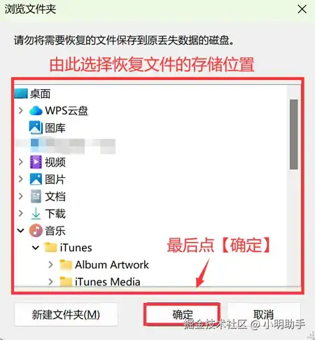 步骤3: 在弹窗里选择好恢复文件的存储位置。