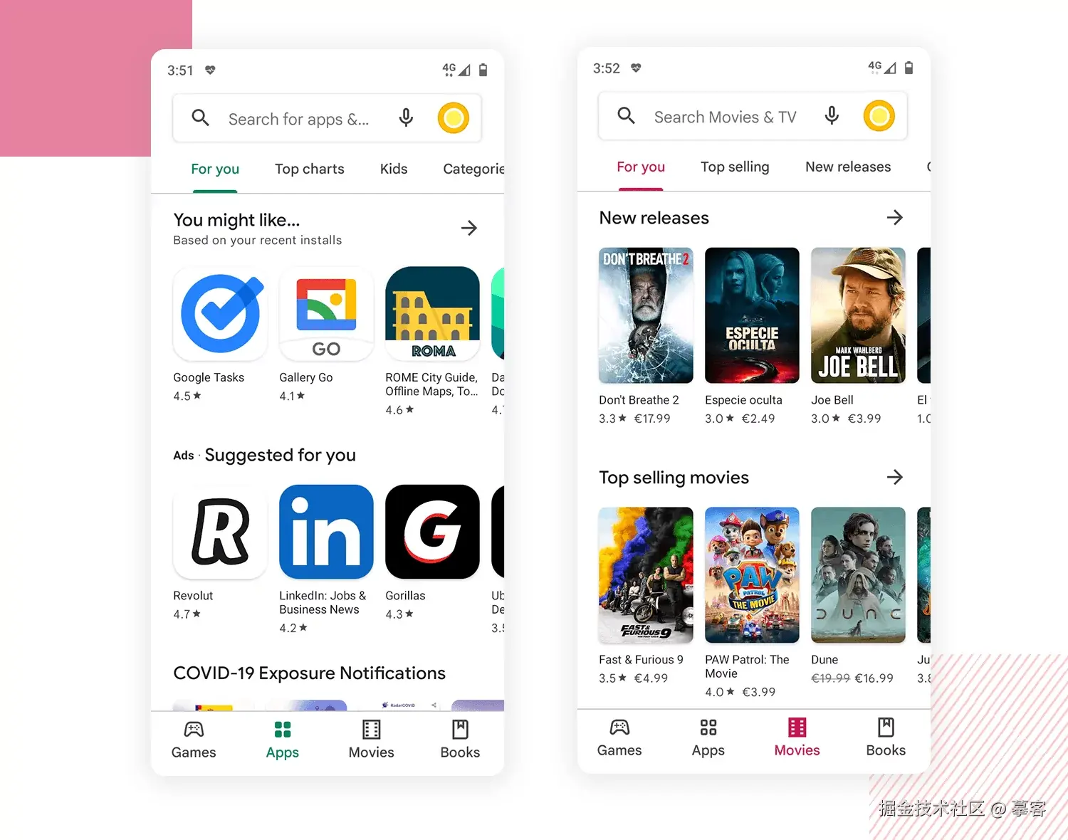 对应用商店来说,还有什么比卡片式UI设计更合适的布局呢?Google Play,全球最大的安卓应用市场,将卡片式设计运用到了极致。每个应用的展示都是一张独立的卡片,包含图标、名称和评分,其中应用图标占据了主要位置。Google Play的卡片布局采用了水平滚动方式,每排卡片的数量经过精心设计,确保三张卡片能够同时出现在屏幕上,而未完全显示的卡片部分则可以吸引用户进一步滑动,探索更多内容。这样的设计不仅充分利用了界面空间,还提升了用户的浏览体验,让海量应用的探索变得更加轻松愉快。