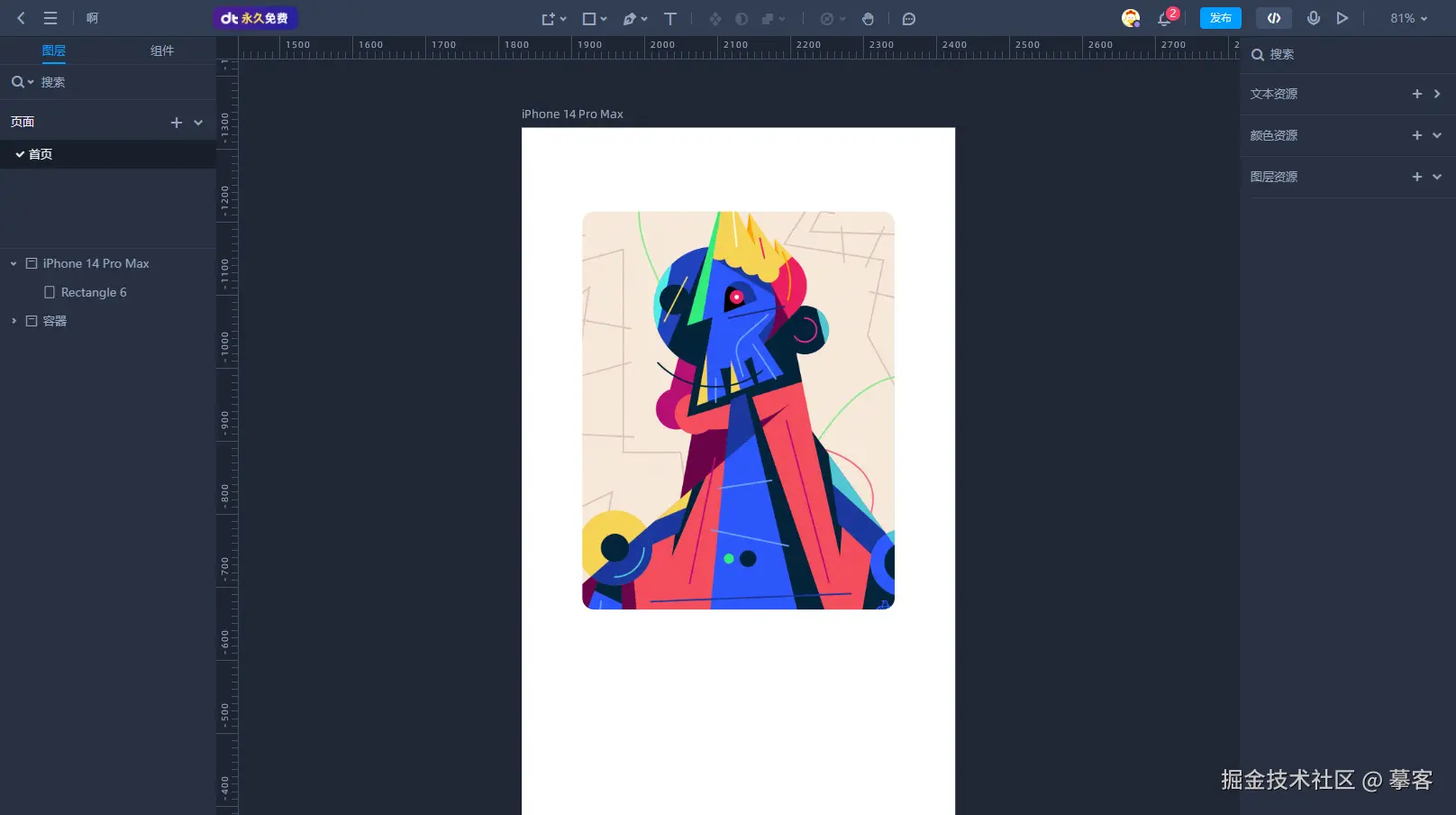 创建一个容器,也就是画板,在画板上添加矩形作为卡片的基础框架,可通过调整圆角来增加卡片的视觉柔和度,