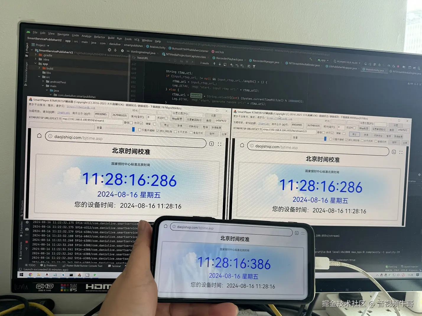 如果是RTMP的,那么我们以Android平台采集屏幕为例,分别启动轻量级RTSP服务和推送RTMP,延迟如下,无论是rtsp还是rtmp流,都在毫秒级时延: