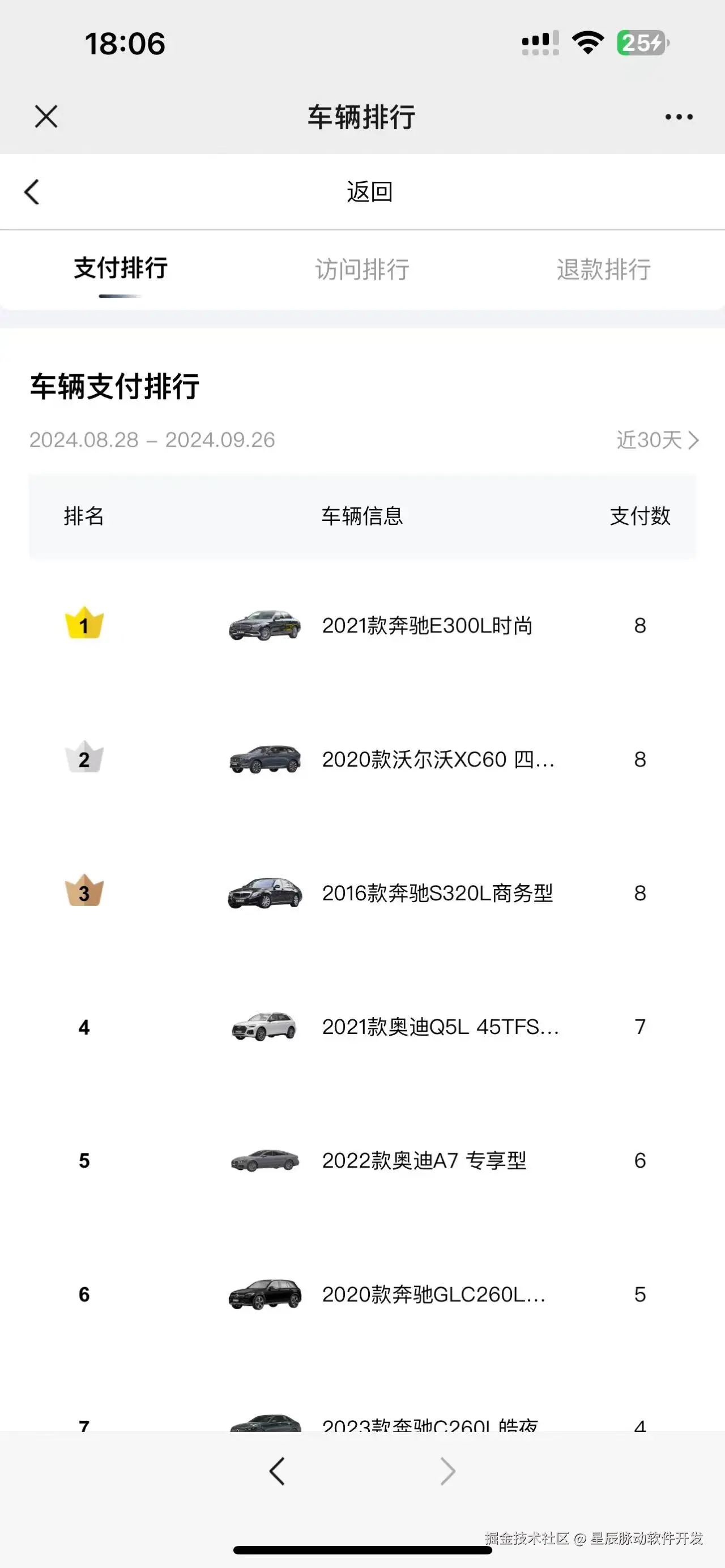 可通过支付排行、访问排行、退款排行进行筛选查看车辆的排行