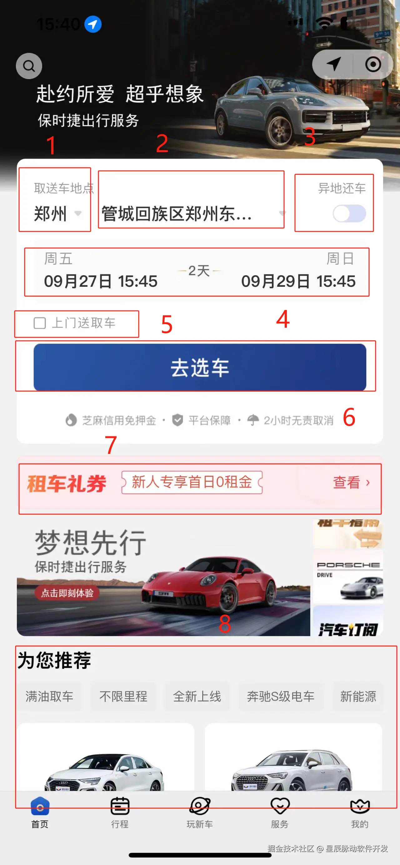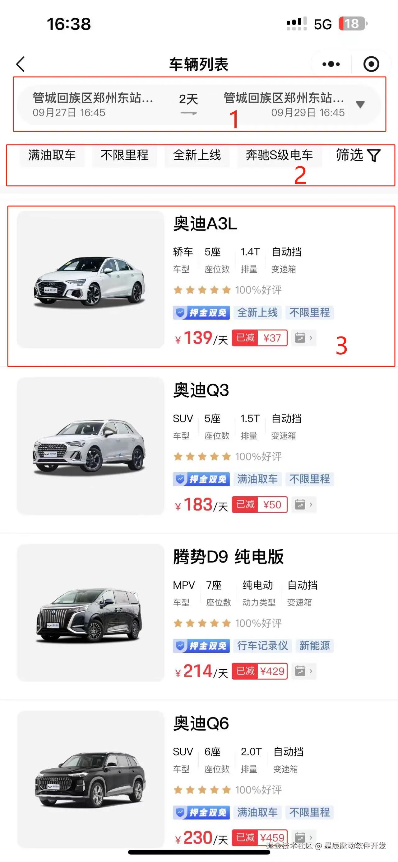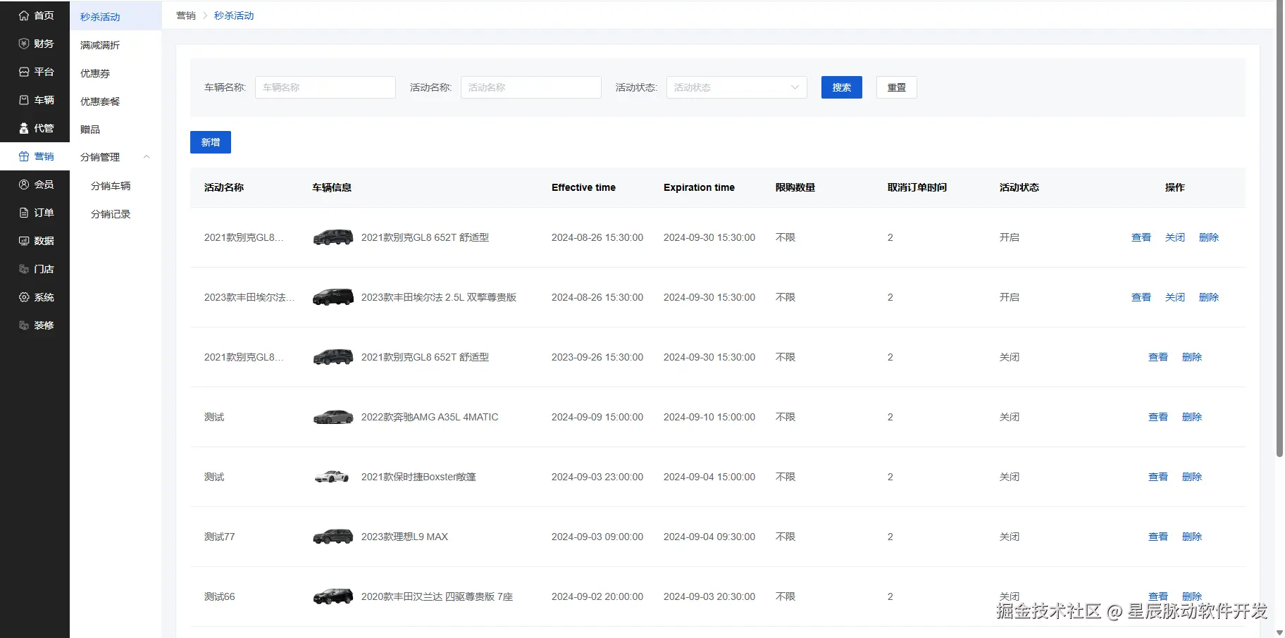 同城租车、秒杀活动、满减优惠、会员功能、代管车辆、装修页面