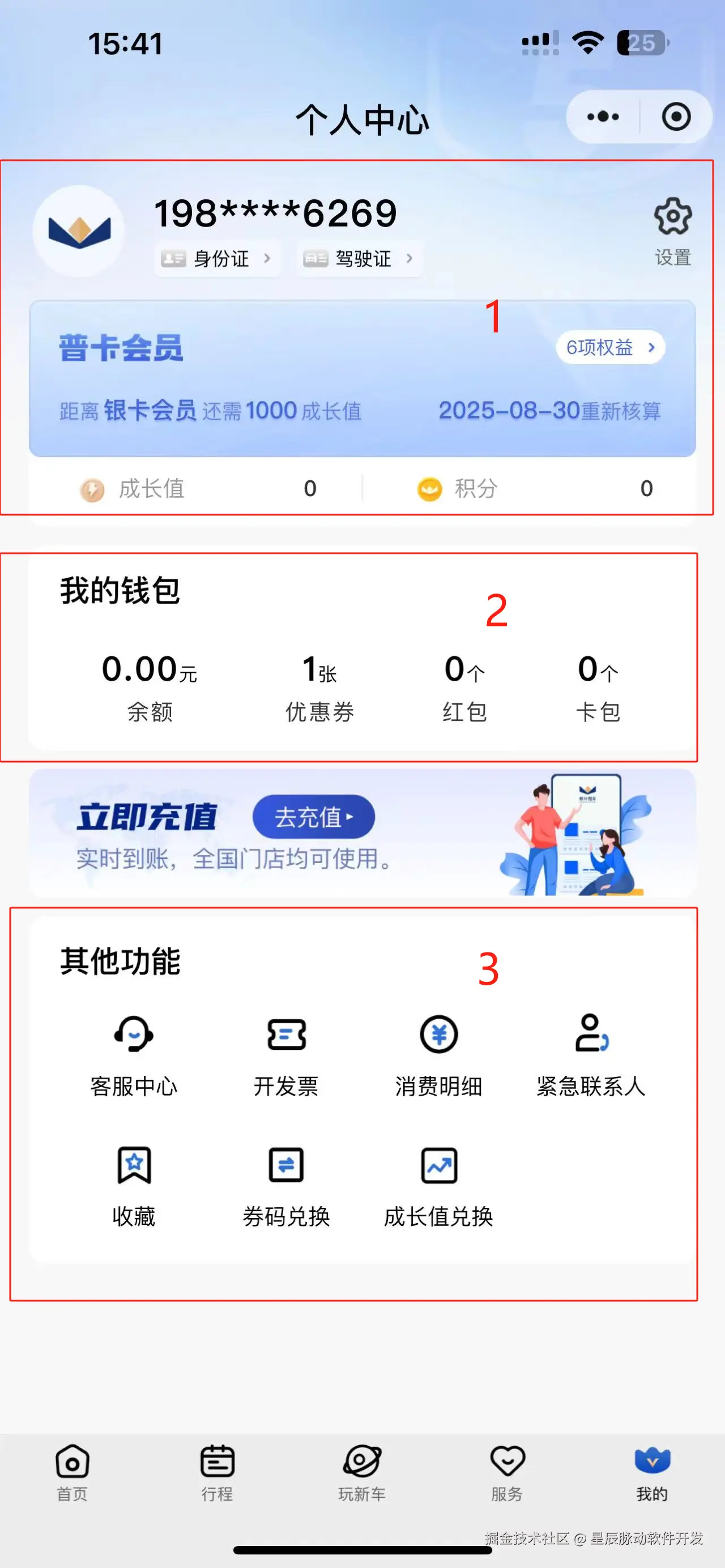 3.其他功能:开发票、消费明细、收藏、紧急联系人、积分兑换