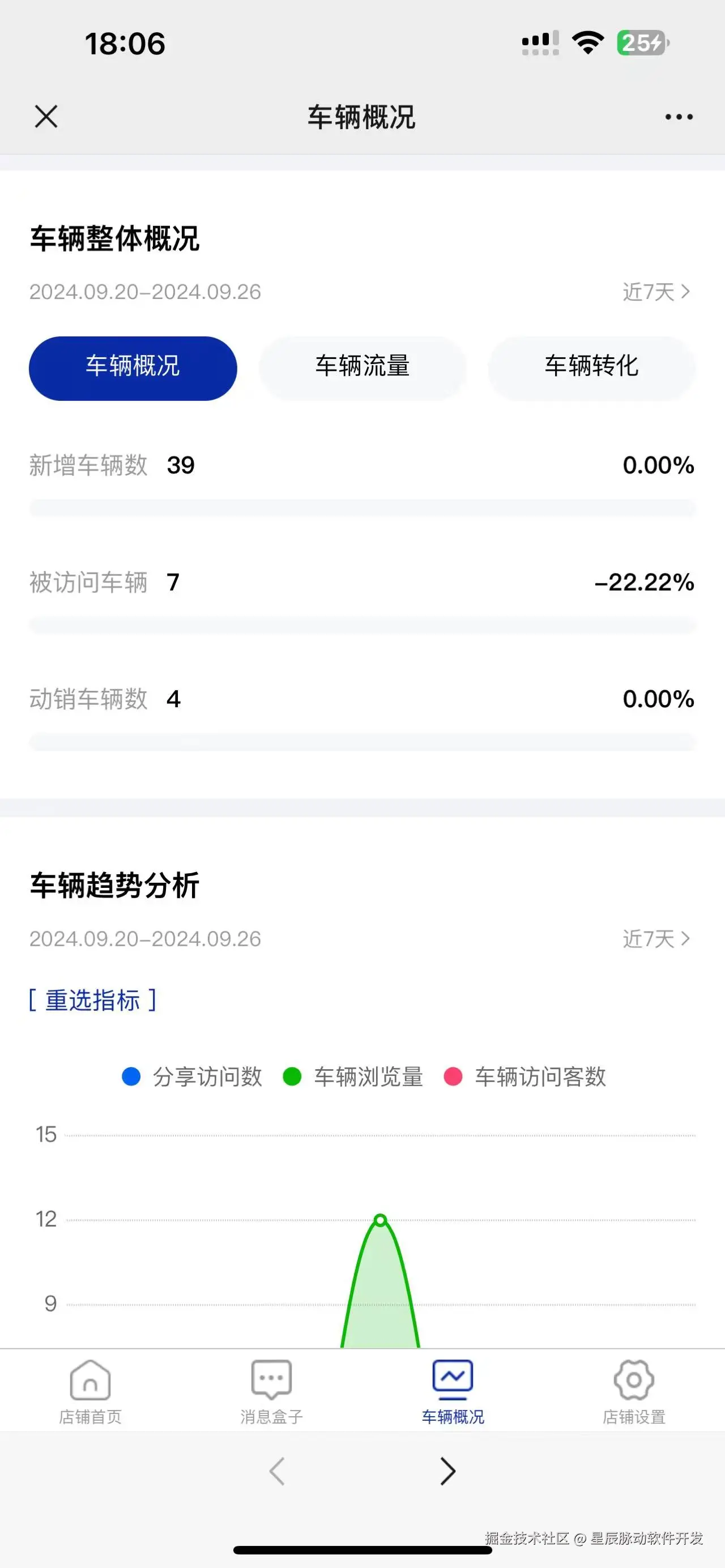 查看车辆的访问量新增车辆数,下方通过图表更清晰的展示车辆的趋势