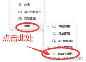 文件夹消失解决方法2:开启文件隐藏的项目