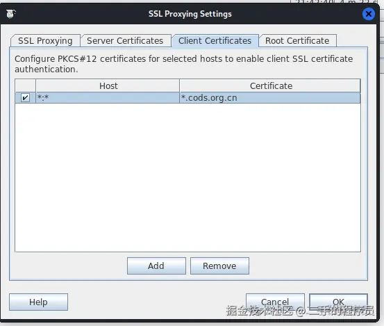 可以看到,它确实是一个 PKCS12 格式的文件,我们可以直接将它导入到charles里面去,为了简单,域名我选择了全匹配。