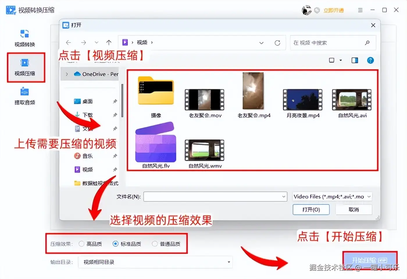步骤2:选择视频的压缩效果,如标准品质,然后点击 【开始压缩】 。
