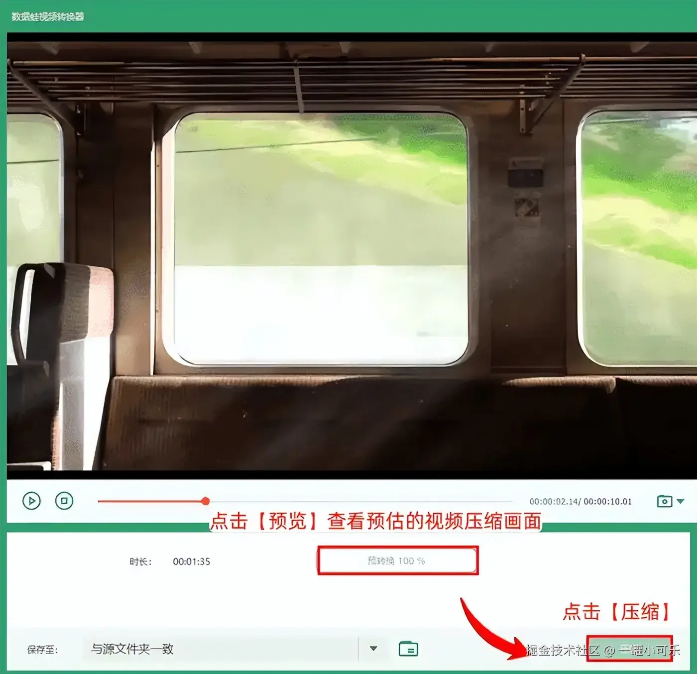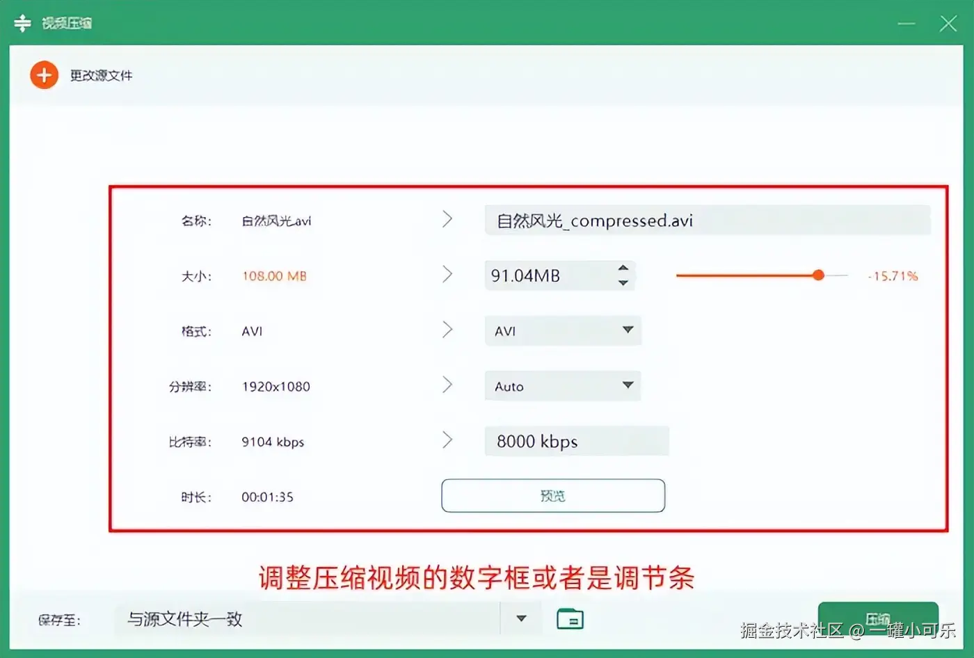 步骤3:完整参数调整后,点击【预览】查看预估的视频压缩画面,确认无误后,点击【压缩】按钮即可。