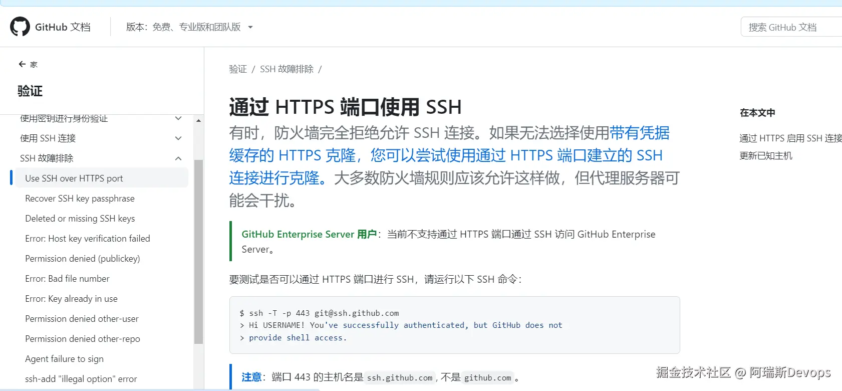 GitHub Enterprise Server 用户:当前不支持通过 HTTPS 端口通过 SSH 访问 GitHub Enterprise Server。