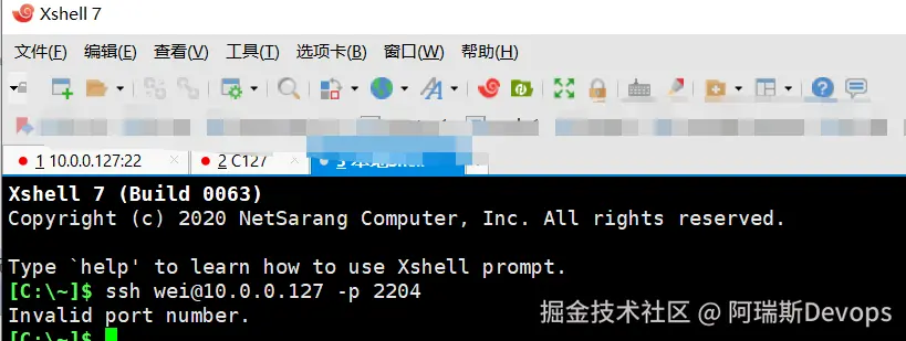 xshell指定用户和端口报错,会发现包端口号阻止,其实是xshell对ssh命令进行封装将-p选项进行优化,
