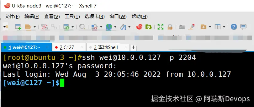$ ssh wei@10.0.0.127 -p 2204