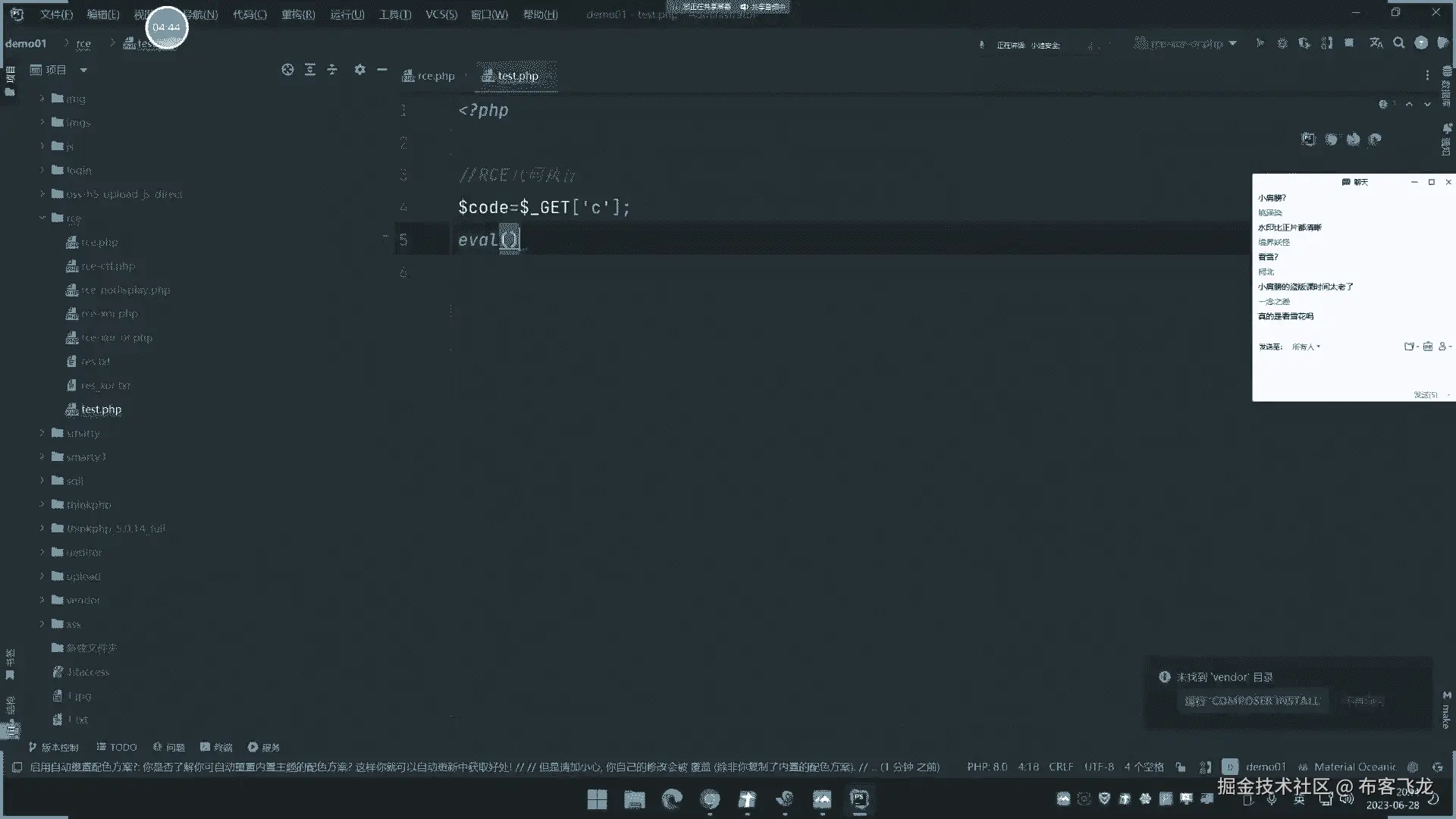 好他在他这里报错了,报错不管他啊,我们来算一下,看没有确定了呀,有漏洞没回血,有漏洞没回写,那么接下来就是要应用到,我刚才讲过的这种案例呢是吧,尝试性的就把无和弦读文件这个配套这个了。