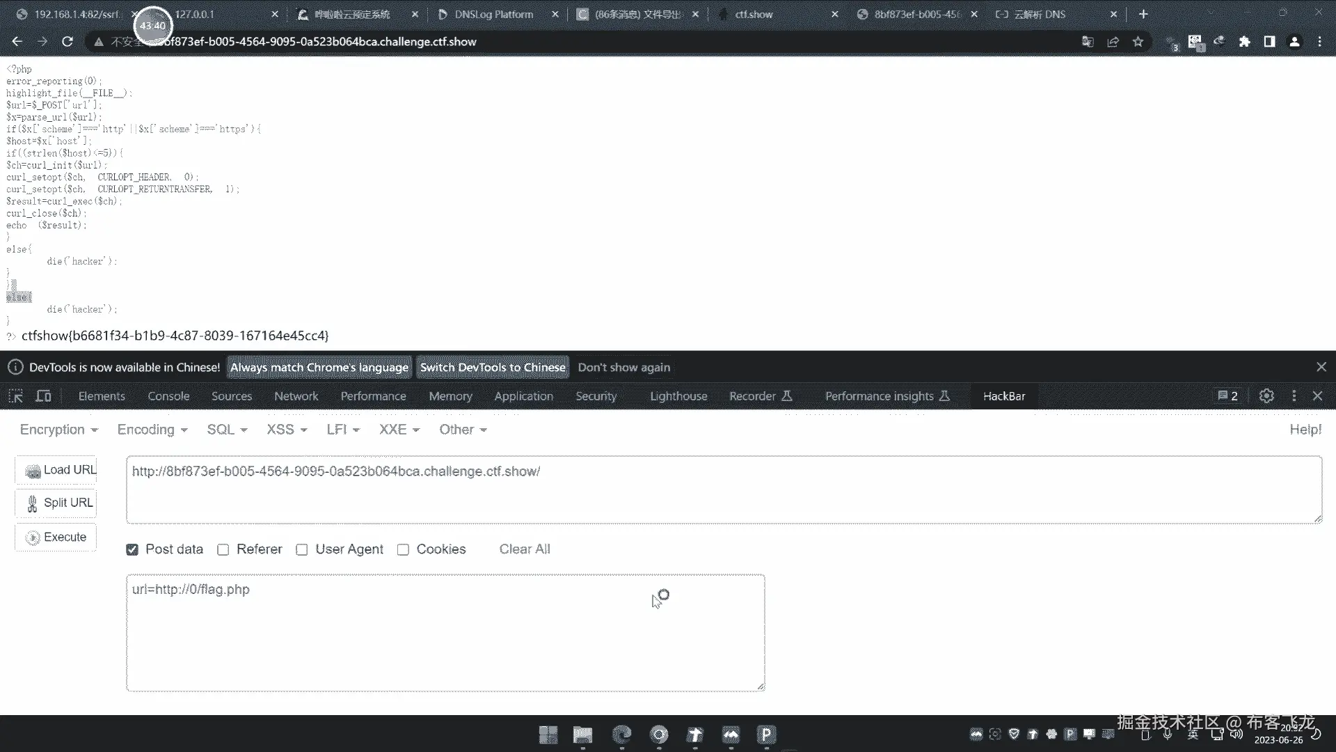 然后呢你看啊这个是这个post去提交这个地址啊,那接下这个信息,然后再去请求了啊,来直接请求他来AP呢,然后请求1270001flag flag,猜一下勾,那答案就出来了,对不对,可能离婚啊。