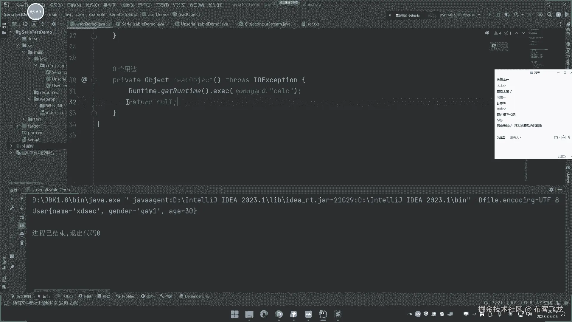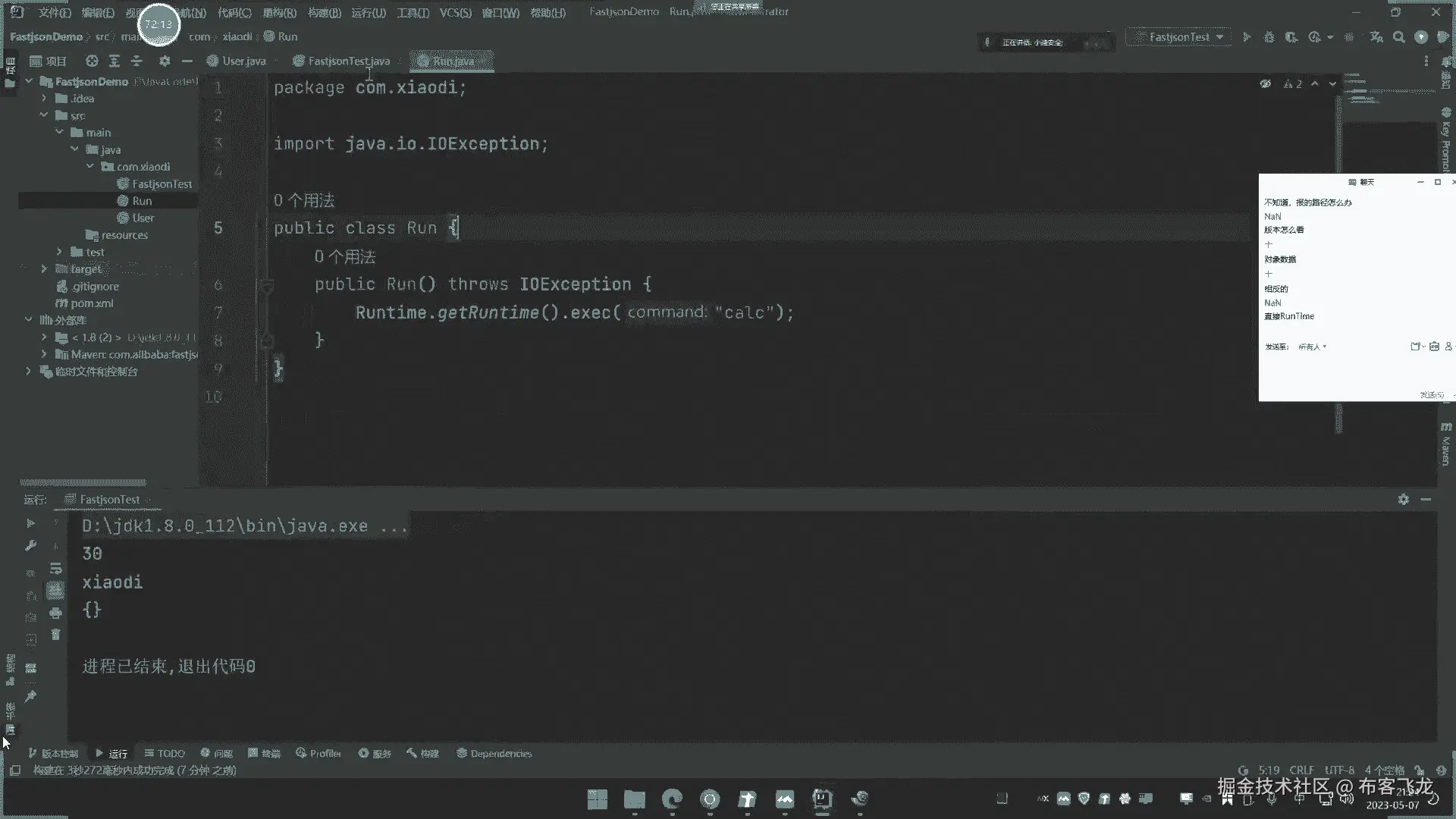 然后呢你现在呢我让他写个这个处理run对象,run对象是什么鬼啊,这里面执行的命令啊,好我看下阿拉V型啊,看下,呐弹出计算器就是搞错对象啊,我把对象一换,他就处理run对象去了。