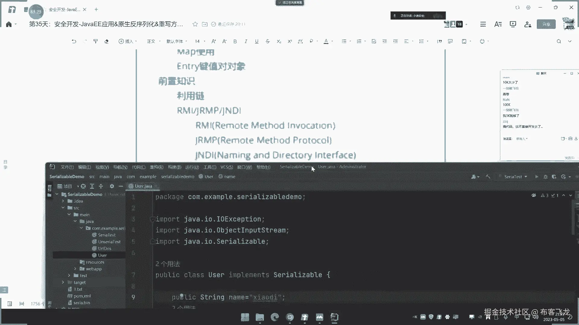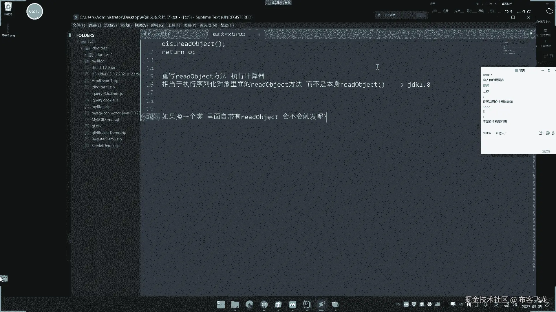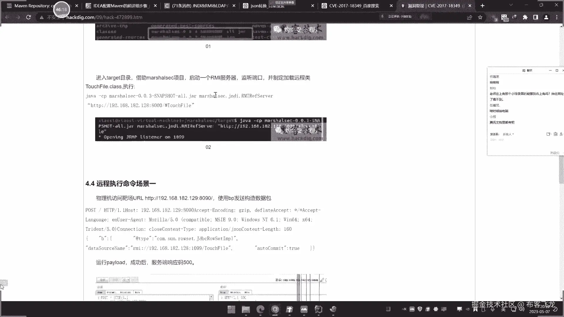 远程的这个什么class,然后呢来执行这个相关的这个代码,就是类似我们代码的,一般就是命令执行RC1这种东西嘛,这么个事情,因为这个实战中我们是没有这个东西的,是我自己在勾搭下装是说啊用这个类。