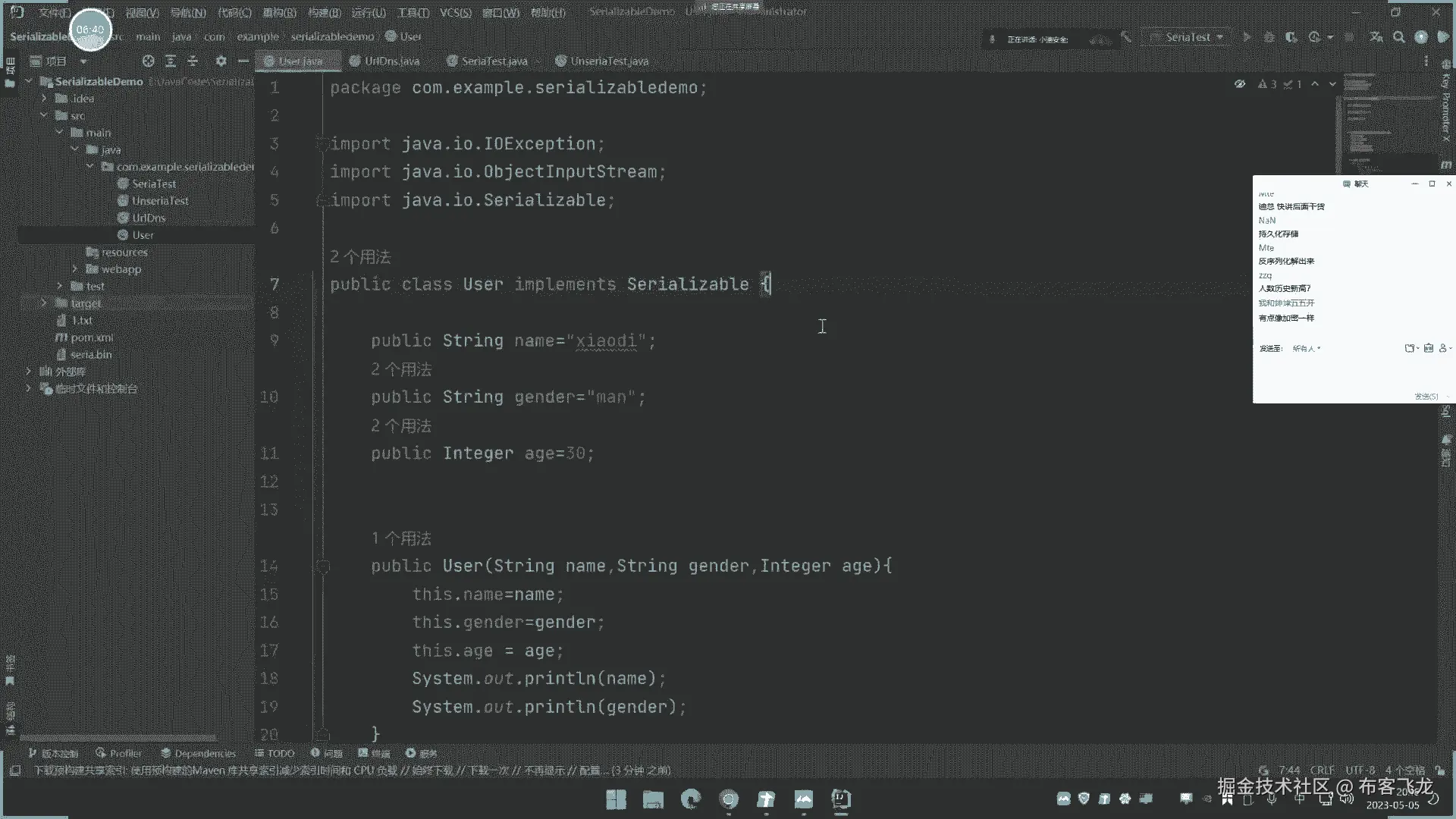 这里是传反是序列化的操作,前面那个是前面是那个是虚拟化,这个是反序列化,就是我们前面讲的反虚化和虚拟化的嘛,一个呢就是说把这个数据呢啊对象呢转换成额,转换成那个文件啊,那种东西序列化。