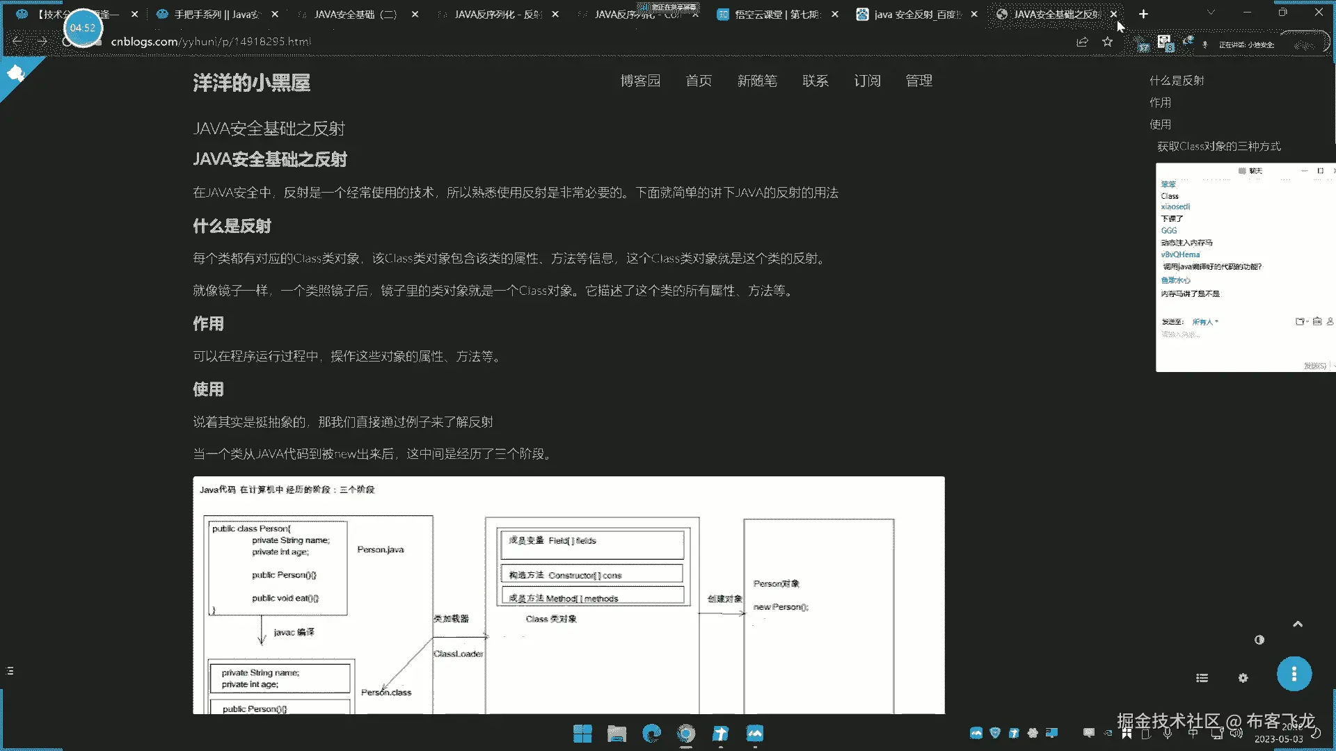 那这个反射的是很重要的一点啊,来这是他的几个截图,关于java的反射类的四个东西,我们待会会用这个相关的,它里面内置的一些函数啊,那些东西再去给他讲啊,然后呢这是网上找了一些文章啊,关于这个什么鬼。