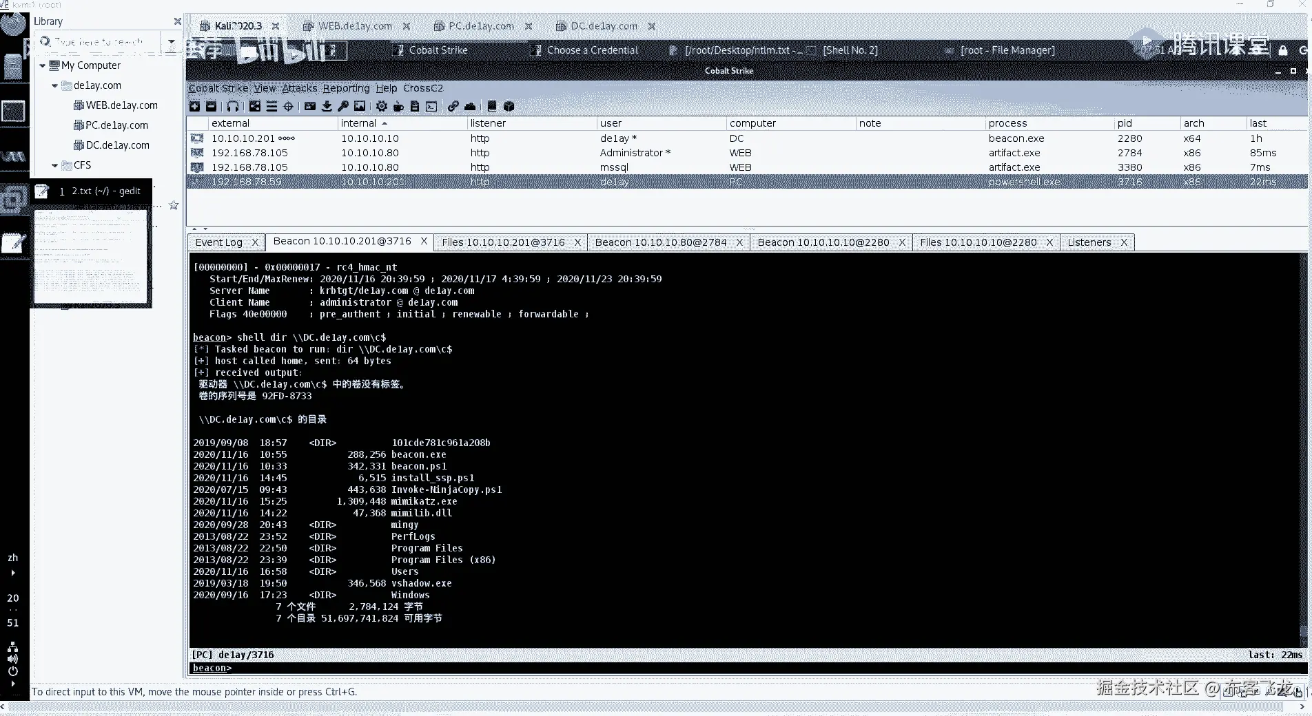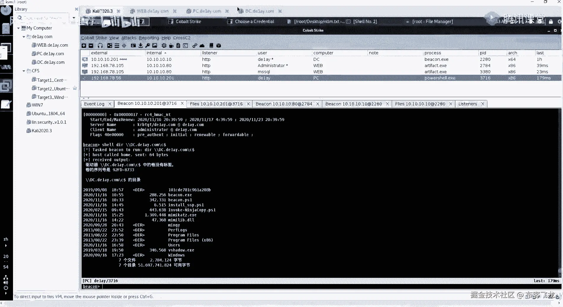 好那么正式开始我们今天的一个课程是吧,我们今天的话我给大家介绍一下,域内的一个权限维持呃,前两天的话给大家分别介绍,就是windows系统以及硬实系统,下面的一个权限为止对吧。