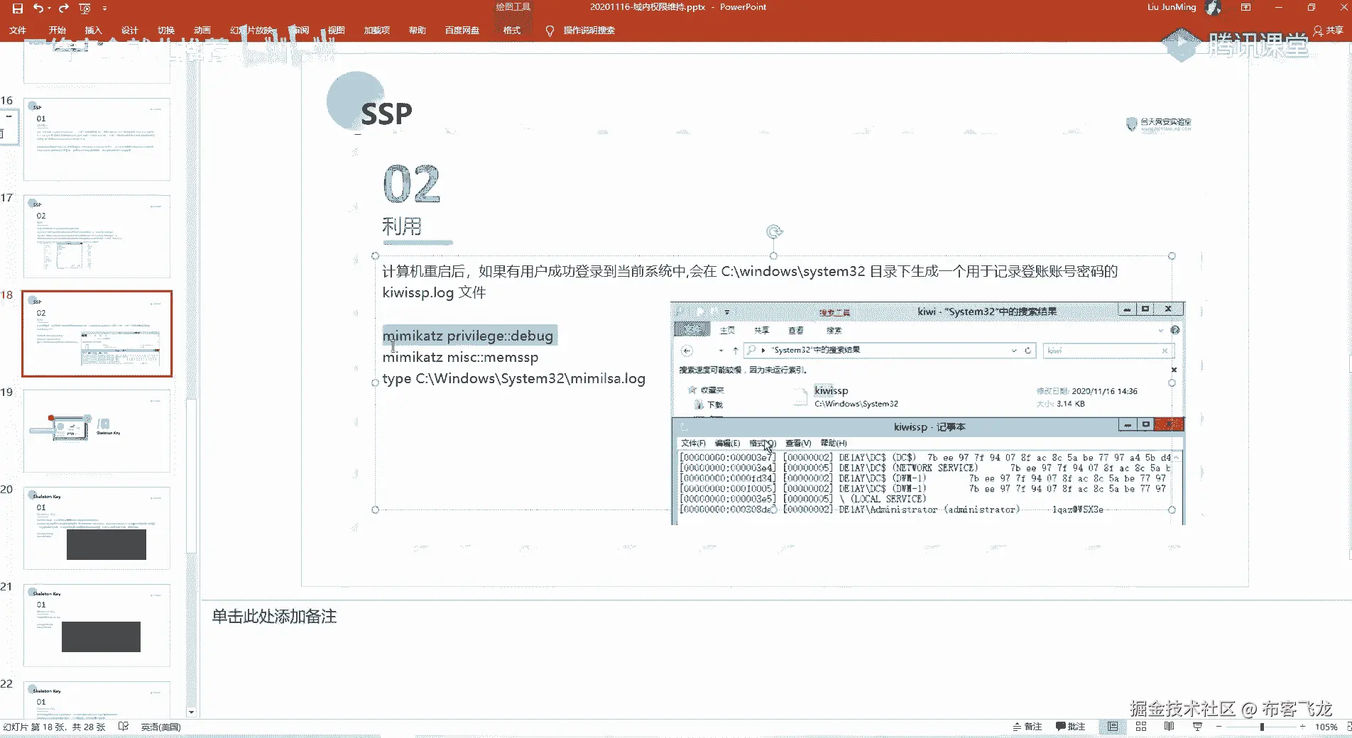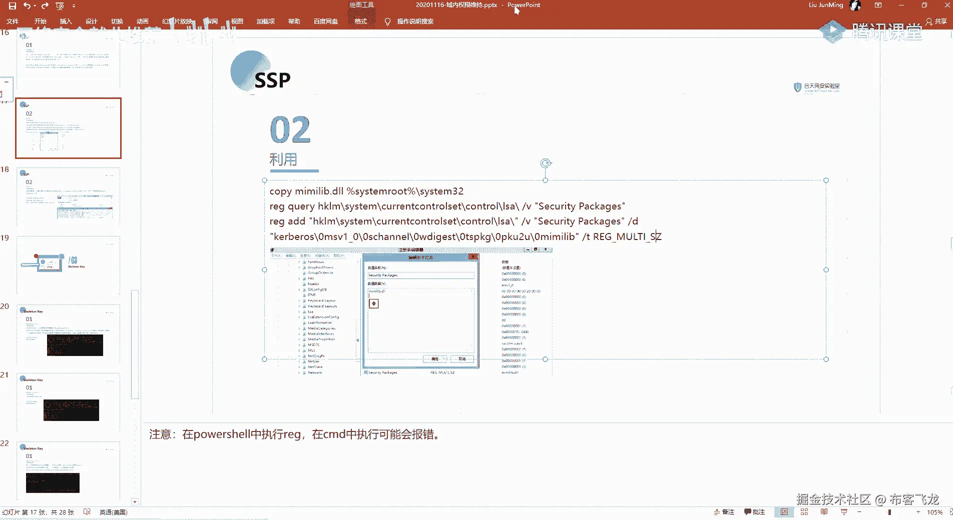 然后的话在本地官方会给大家介绍,就是说我们的一个黄金票据的一个伪造,就说再去进行一个域内的一个权限维持的时候,好的话,第二个的话就是s s p,而第三个是这个character p啊。
