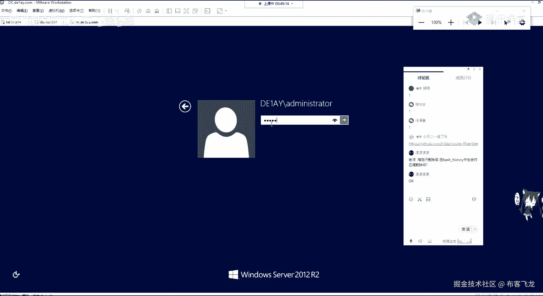 开一个前排还行的时候,要注意的话,就是你的一个权限,就是你的这个要获取它的这个哈希值的话,你首先的话你的这个用户权限的话,你首先需要是在域内,就是说你是一个御用户,然后的话就是说你的这个你用过的话。