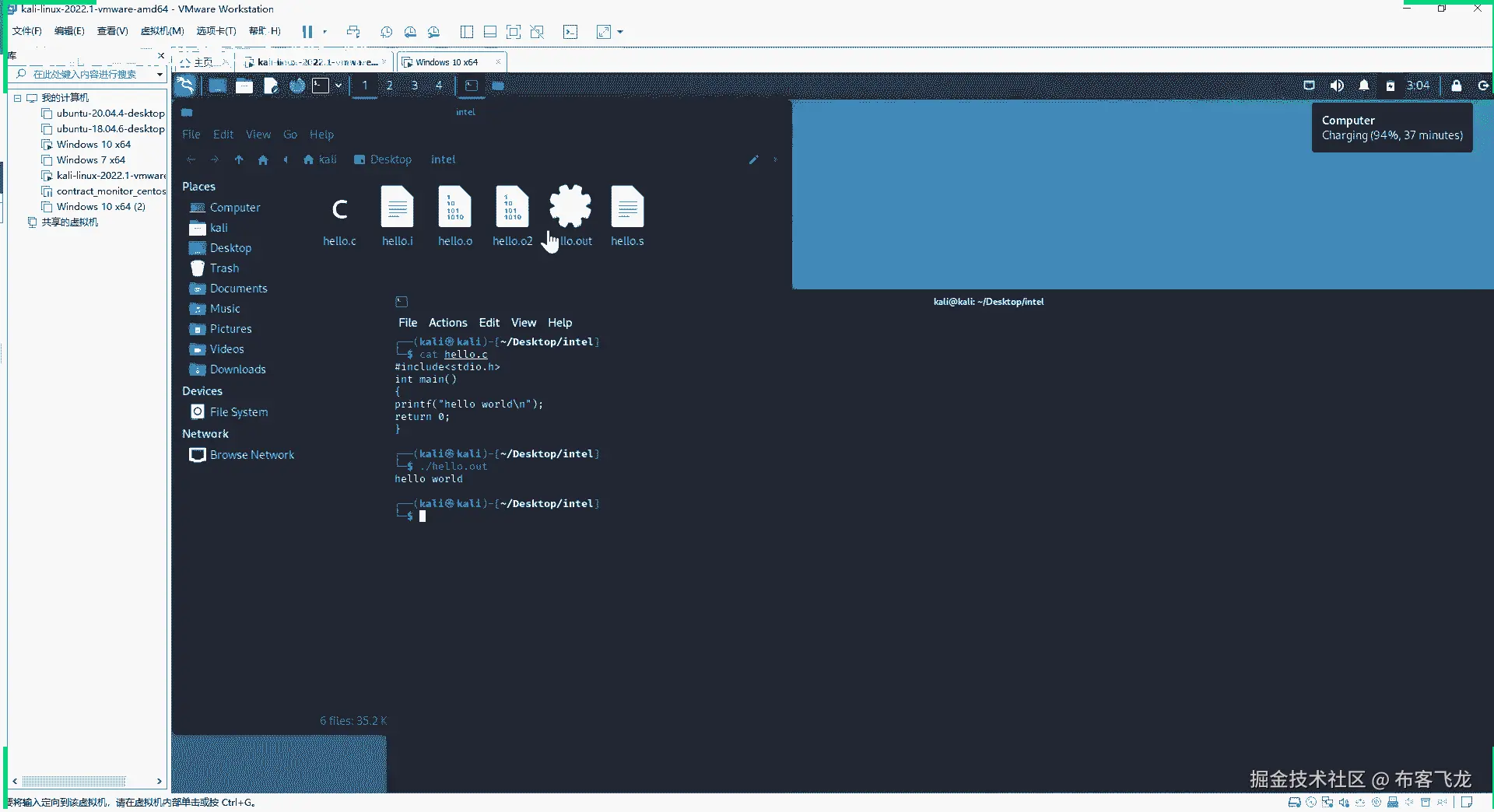 就是为了让我们更好地理解这个文件的内容,如果我们直接cat这个hello。o,你看这是二进制文件夹,它大量的是乱码,是不显示,我们看不懂的,所以说要以这种形式来进行显示。
