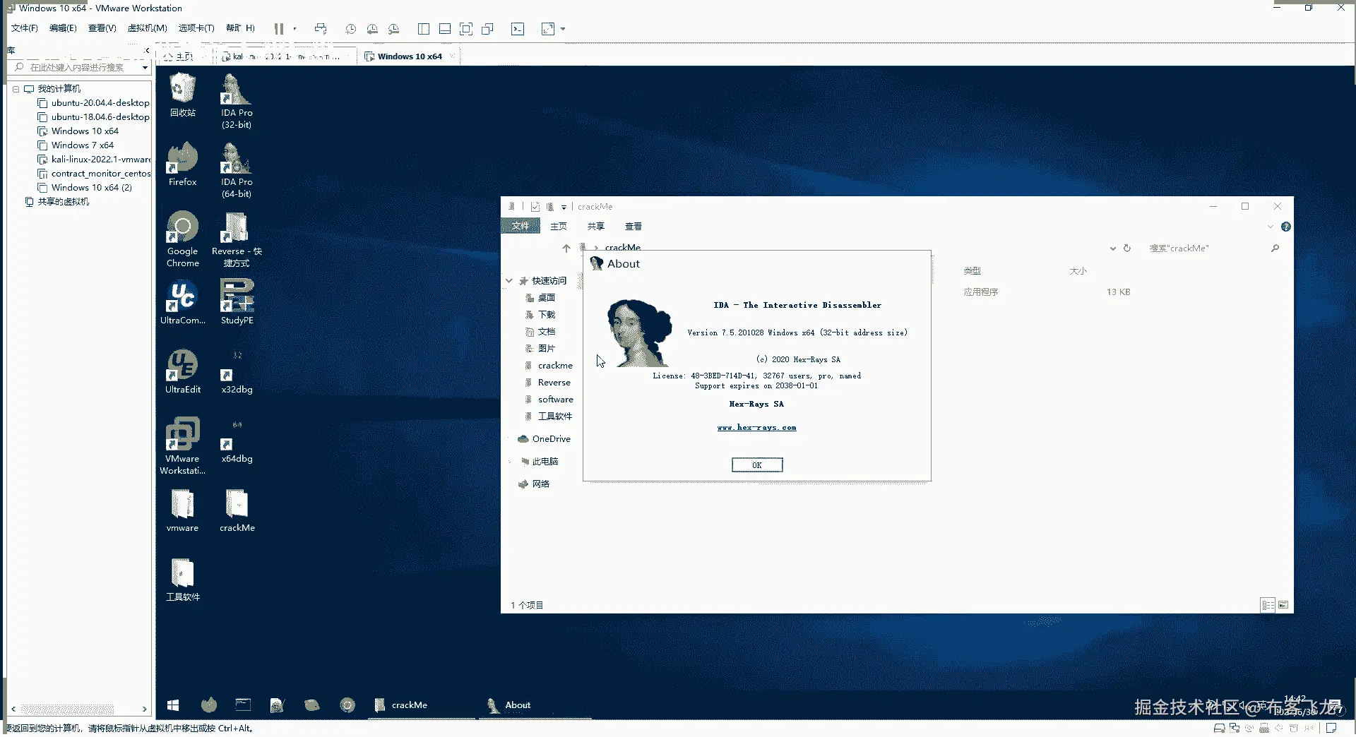 我把它源代码给逆向出了,那么我就能自己进行计算,不断的计算,直到它的值等于它里面这个程序,最后要校验的这个哈希值,那么说明我这个用户名和密码是正确的,这样就对这个软件或系统进行了破译,这是个动态调试。
