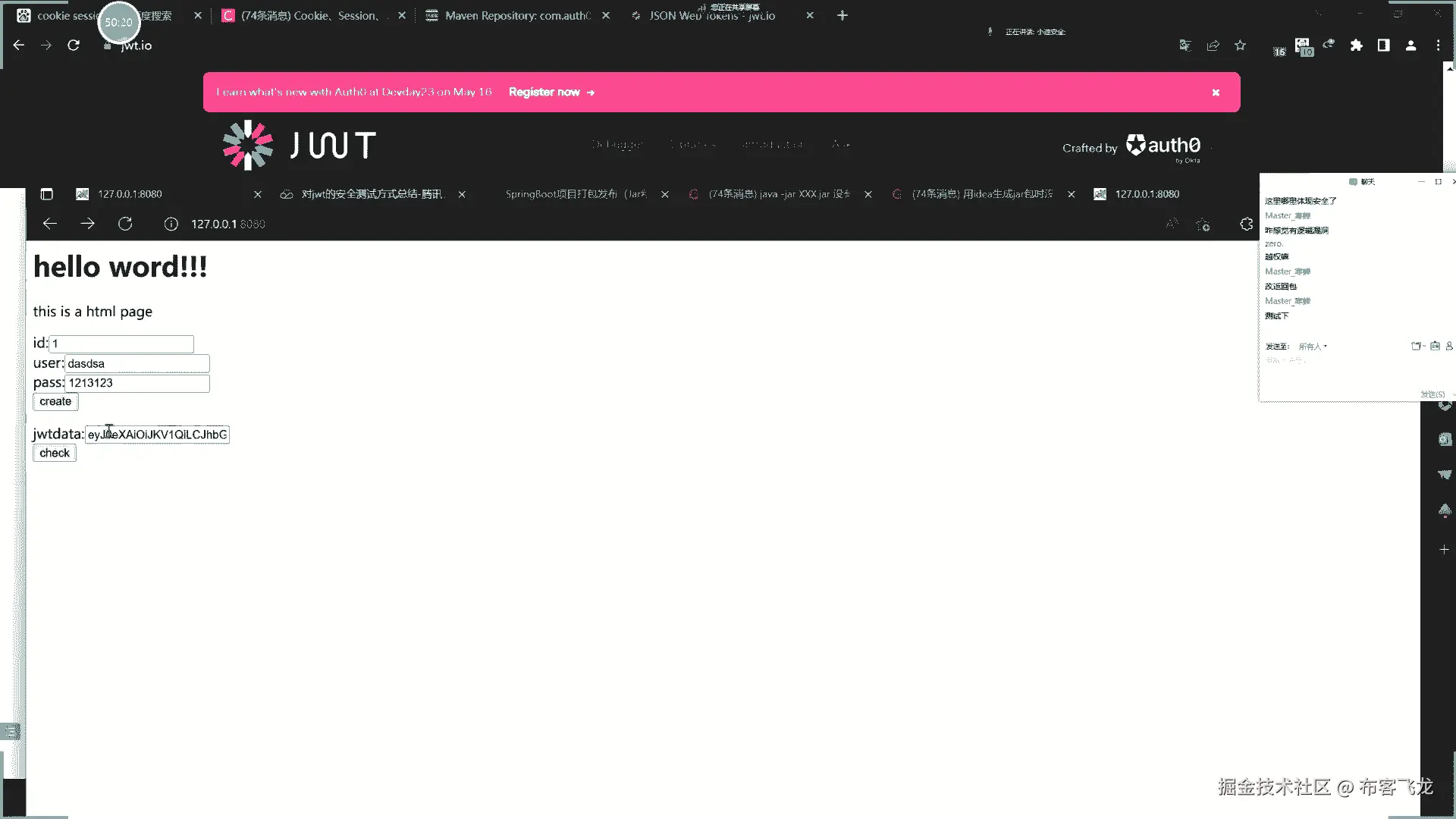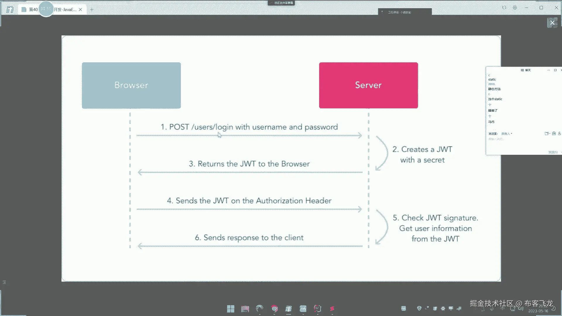 这不是有点尴尬啊,这个JWP怎么搞上去,尴尬了,补一下啊,现在提的这个生命进程,然后呢呃这里面有两个安全问题啊,还有流程,我们把流程写下,关键啊,这个流程呢就主要有两点,一个是创建,一个是检验。