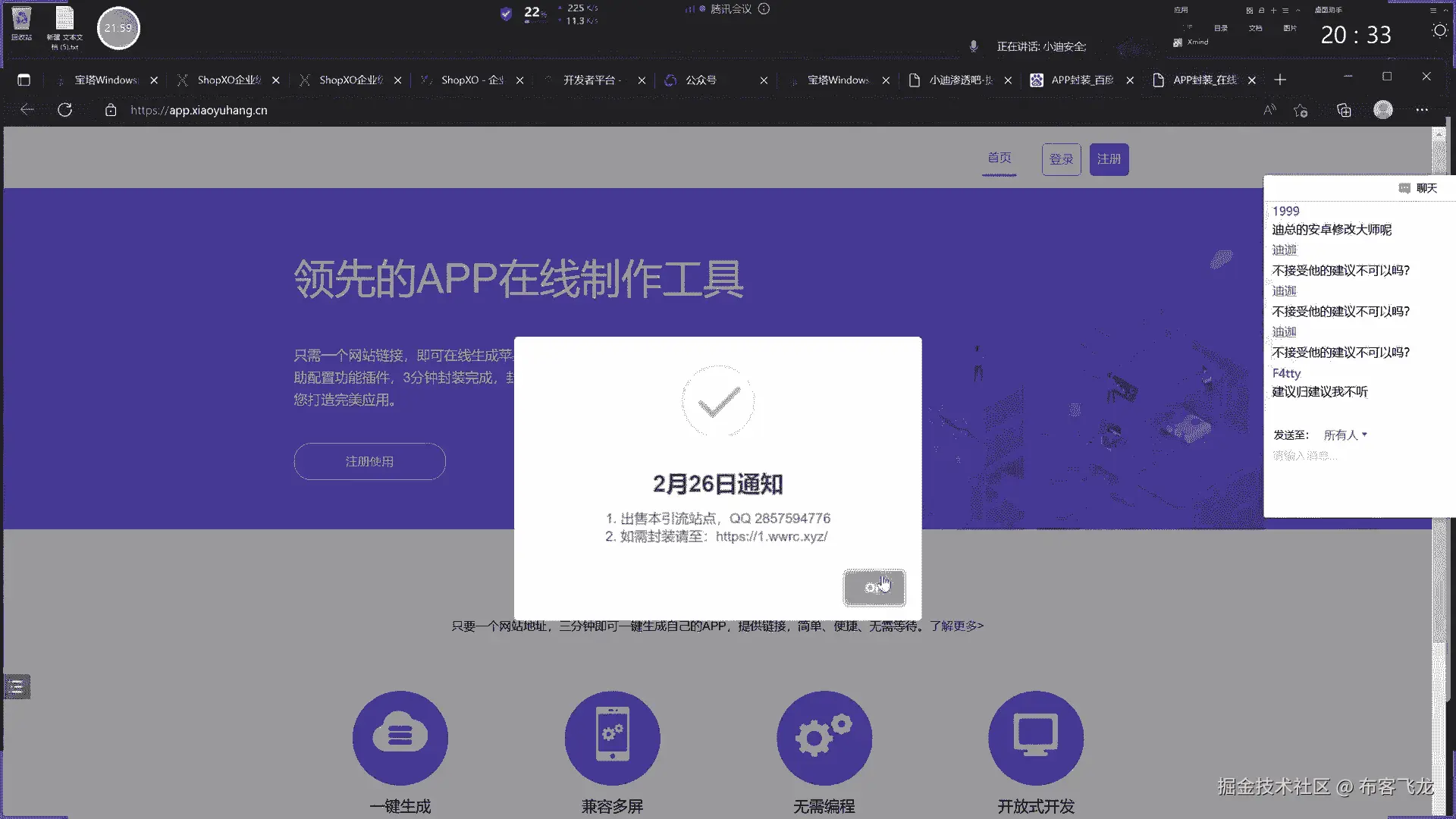 好等待下一个结果,然后呢我们给大家实现一下一个什么效果呢,就是说我去搭建一个网站,到最后的网站也有app也有了,其实就是说他这个app的一个设计理念。