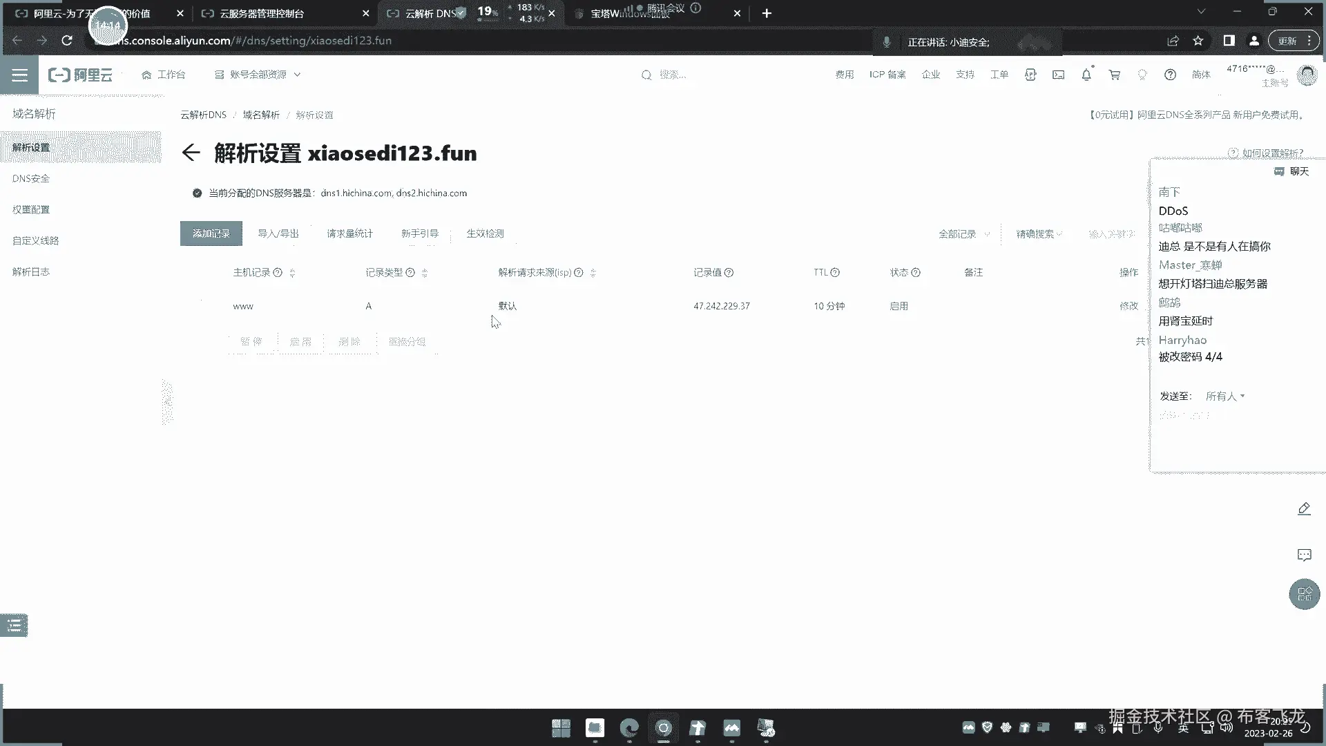 等他一下吧辣椒,然后我们这边呢把这个域名把它解析一下,改一下啊,总是要改的,要先把把网址打起来之后,才域名解析那个操作嘛哈,拿玉米解析,其实这里有个小的小说里123点方对吧,也是我们前期测试那么多的。