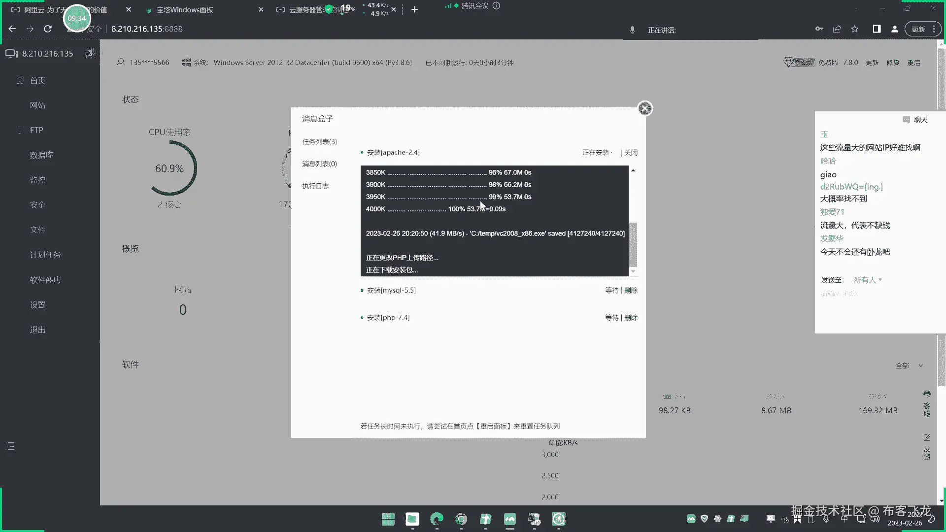这个APP呢它有一种分类,那就是我其实就是套用的网站,也没没具体啥,所以你在做app的一个渗透测试的时候呢,BS要明白这一点啊,等待服务器先连接上去啊,他还在装系统,这里还需要等待12分钟吧,好可以了。