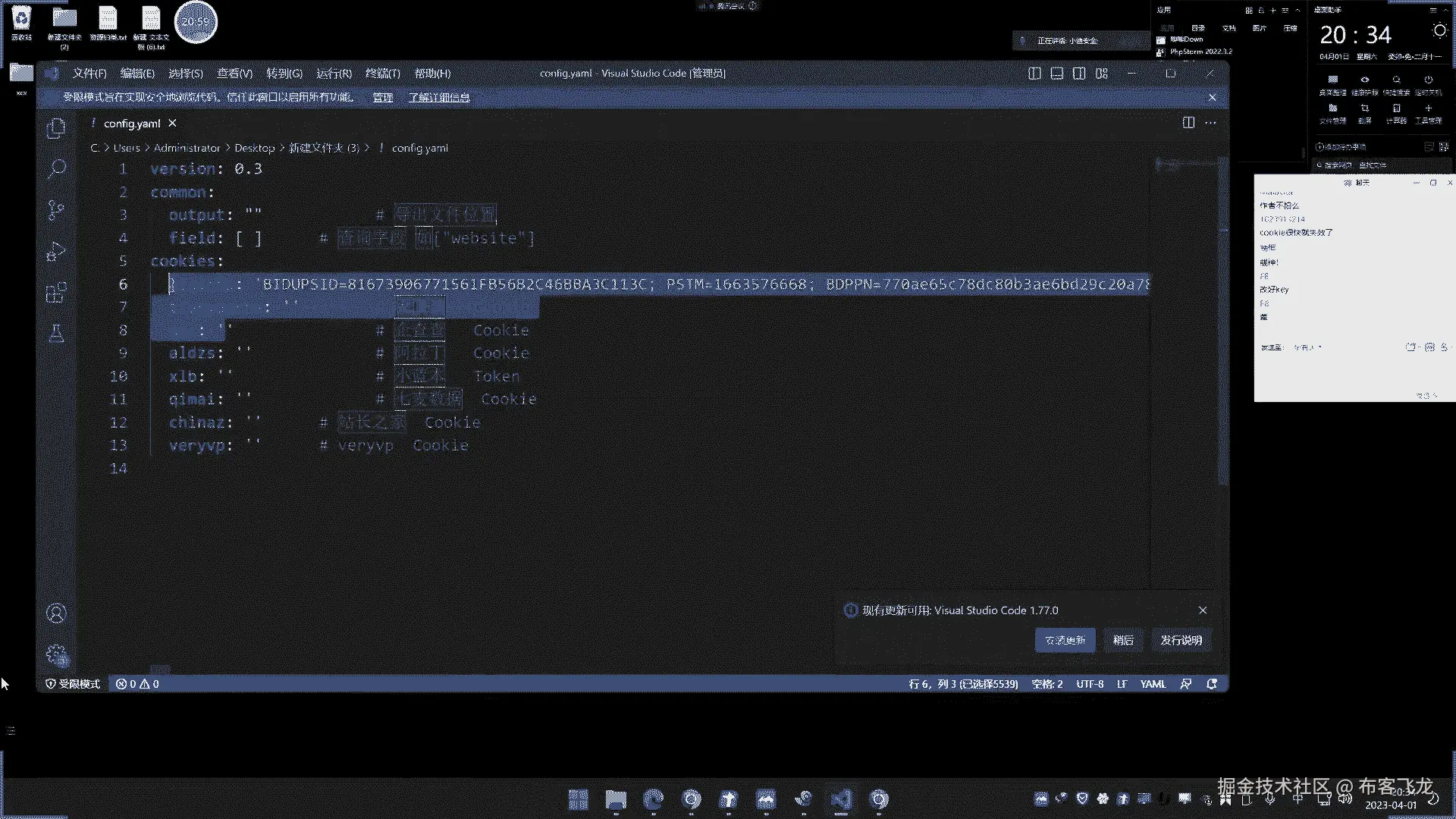 它就会缩成生成一个配置文件,那么这个配置文件呢,就是我们想要的这个什么配置信息呢,比如说啦这个是爱奇茶的cooking,这个是天眼查的QCC的这个蓝本哦,这个项目是我讲错了啊。