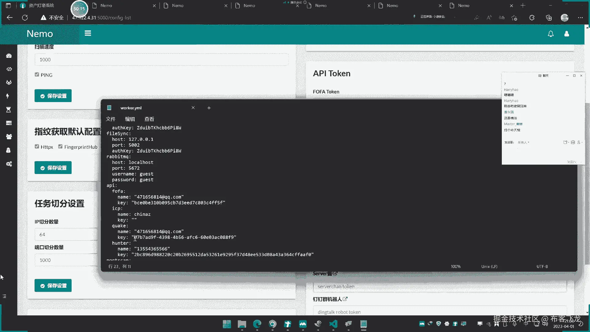 然后呢在这里呢配置一下,然后把你这个foo和这个相关的东西的话,配置进去呢,比如说cooking,这是爱奇茶的爱其他平台的cooking写进去,然后呢full的这个email写进去。