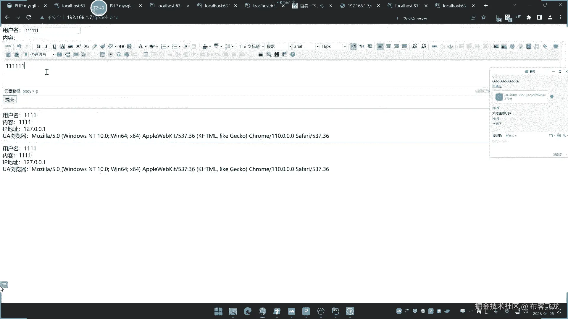 那cookie session验证好之后,写的不安全也会绕过呀,后台模块登录的一些安全问题对吧,留言板写了啊,与此同时很简单的道理,留言这里写了,对不对,那我做个简单XS一个案例演示,也是没问题的呀。