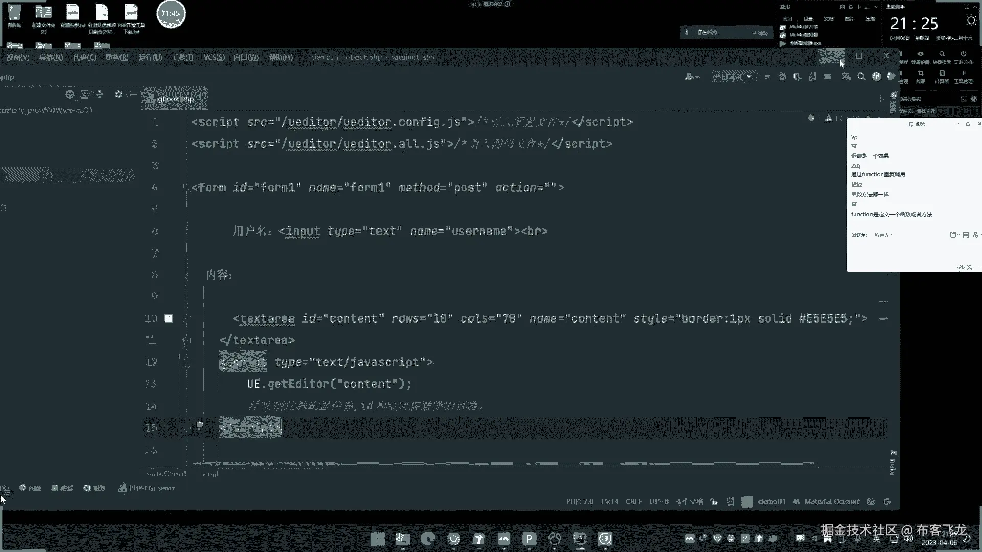 就引入那个编辑啊,这里面有这个script taxi应用实例化编辑器,还有这个东西没写进去,就这里那是内容啊,来实例化编辑好,现在我们刷新一下页面。