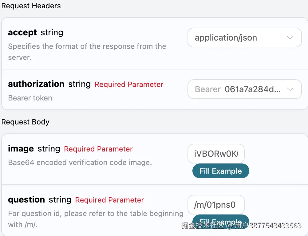 accept:想要接收怎样格式的响应结果,这里填写为application/json,即 JSON 格式。authorization:调用 API 的密钥,申请之后可以直接下拉选择。