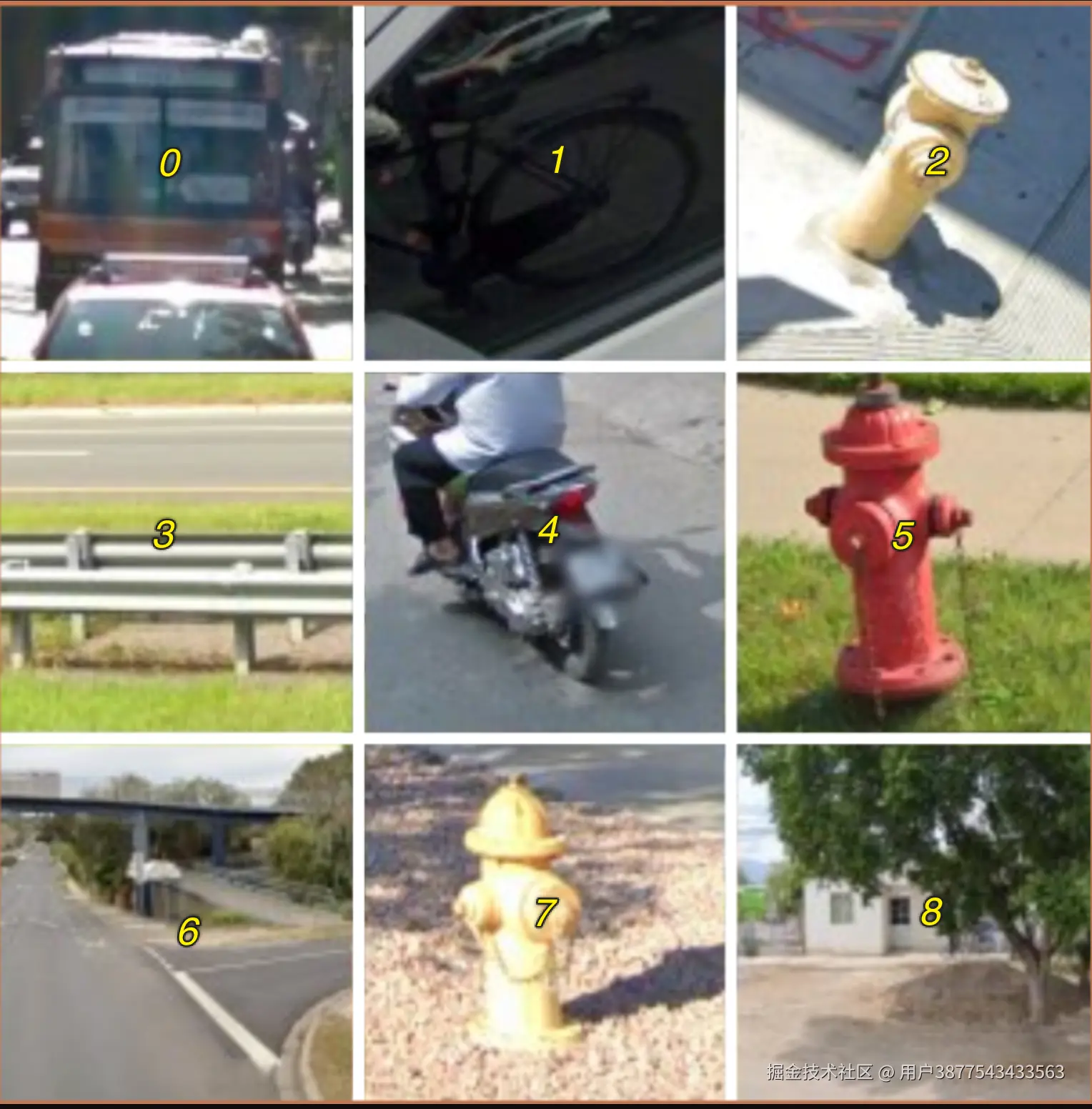 可以看到我们得到了处理 Recaptcha2验证码图像 的验证结果,我们首先对验证码图像进行划分区域,如下图所示: