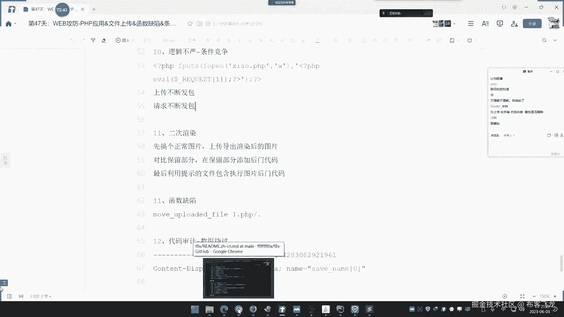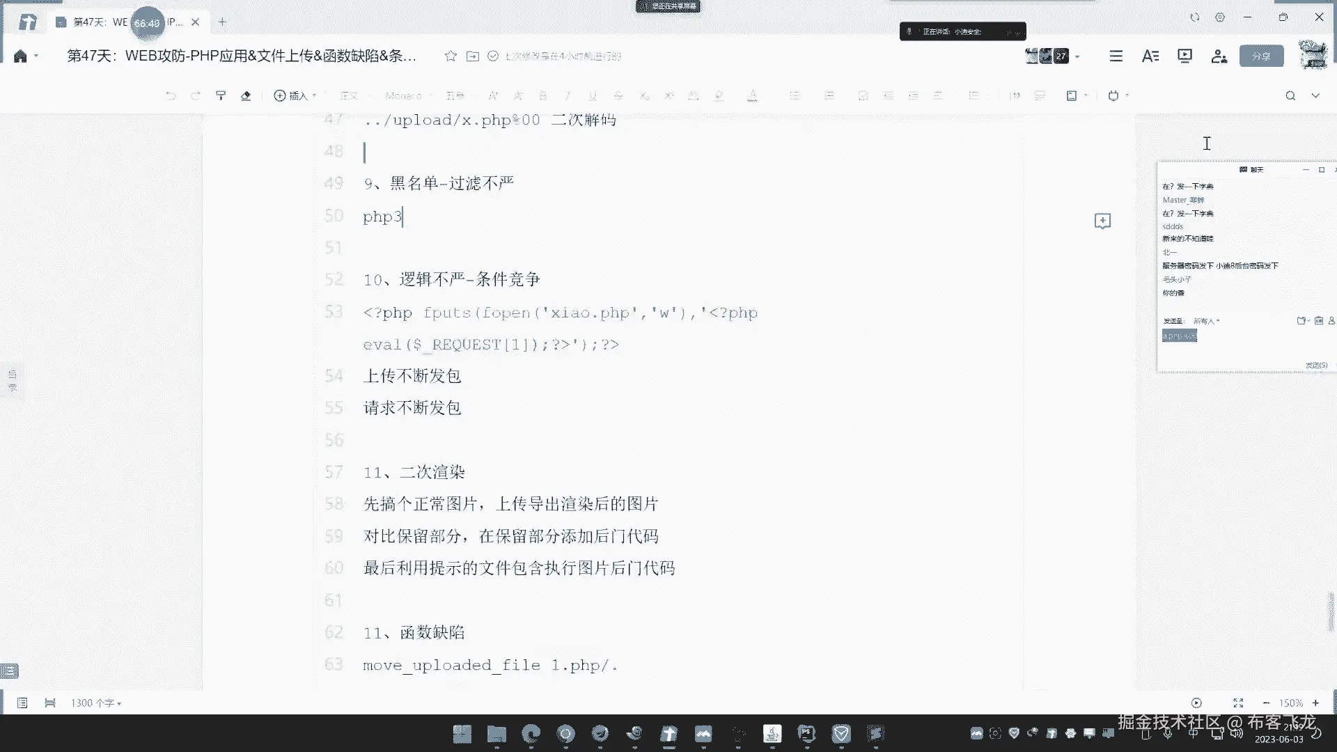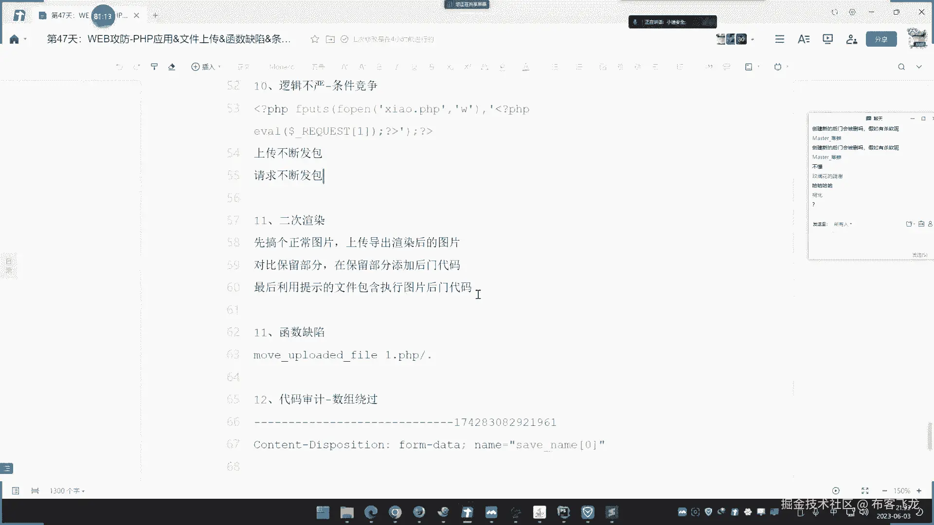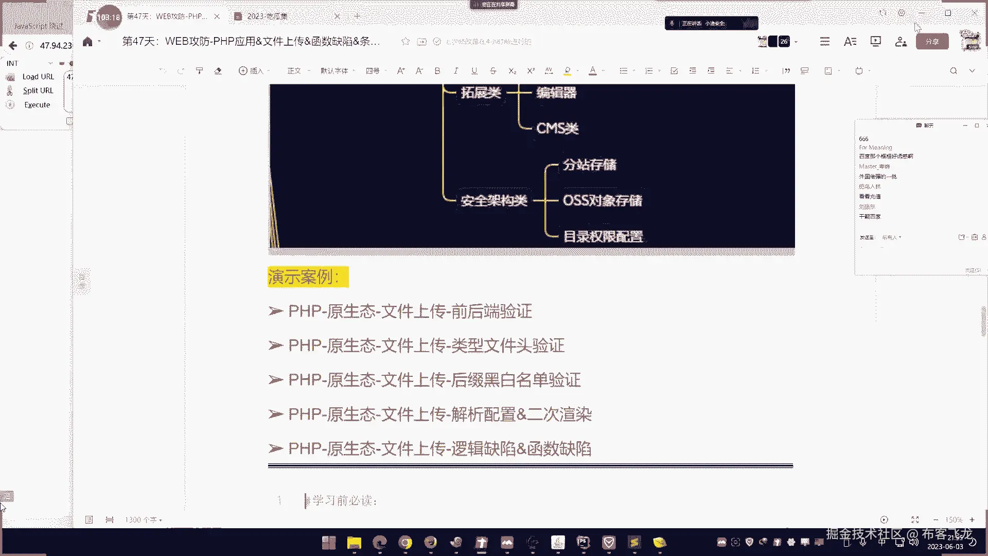 那麼中間上面的安全問題造成了,上傳的也不同,所以啊我這裡呢雖然說沒有把它,歸類到這個上面去因為他太多,太複雜了無法說,就說我今天講文件上傳,雖然說我只是說講PP,但是你要意識到,有些這個支點呢是在。