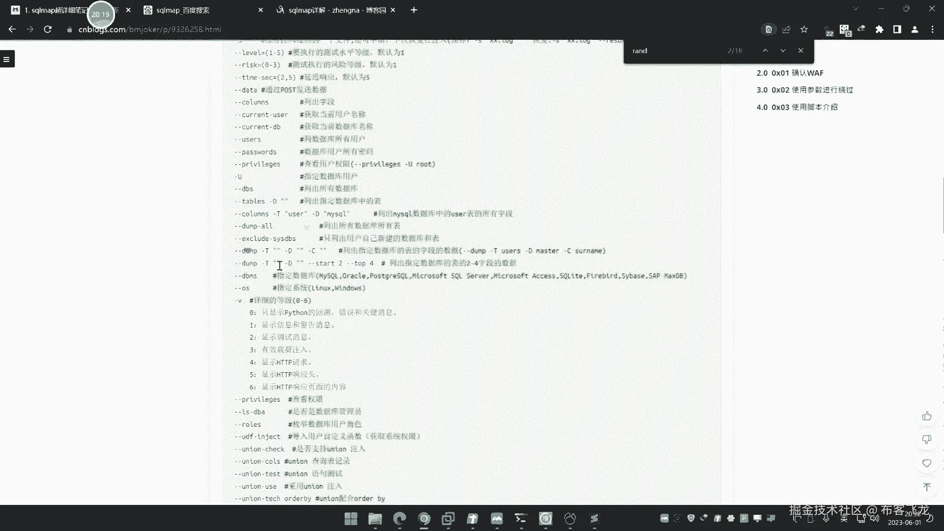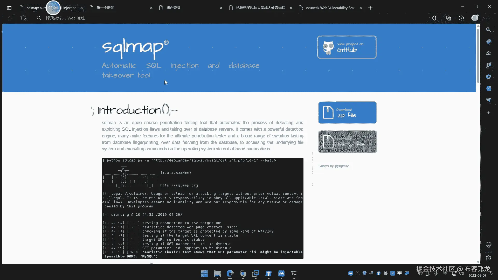 还有那个盲组上面方面报数是时间,不对不对,嗯好这个是他这个大概介绍啊,就说是一个专门来针对SQL注入利用的一款工具,通过这个租点呢,用这个工具呢可以实现很多类的一些工具方法。