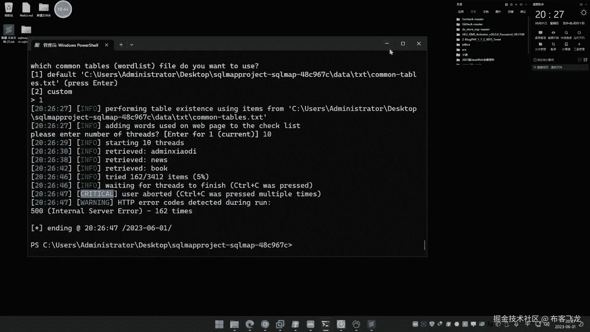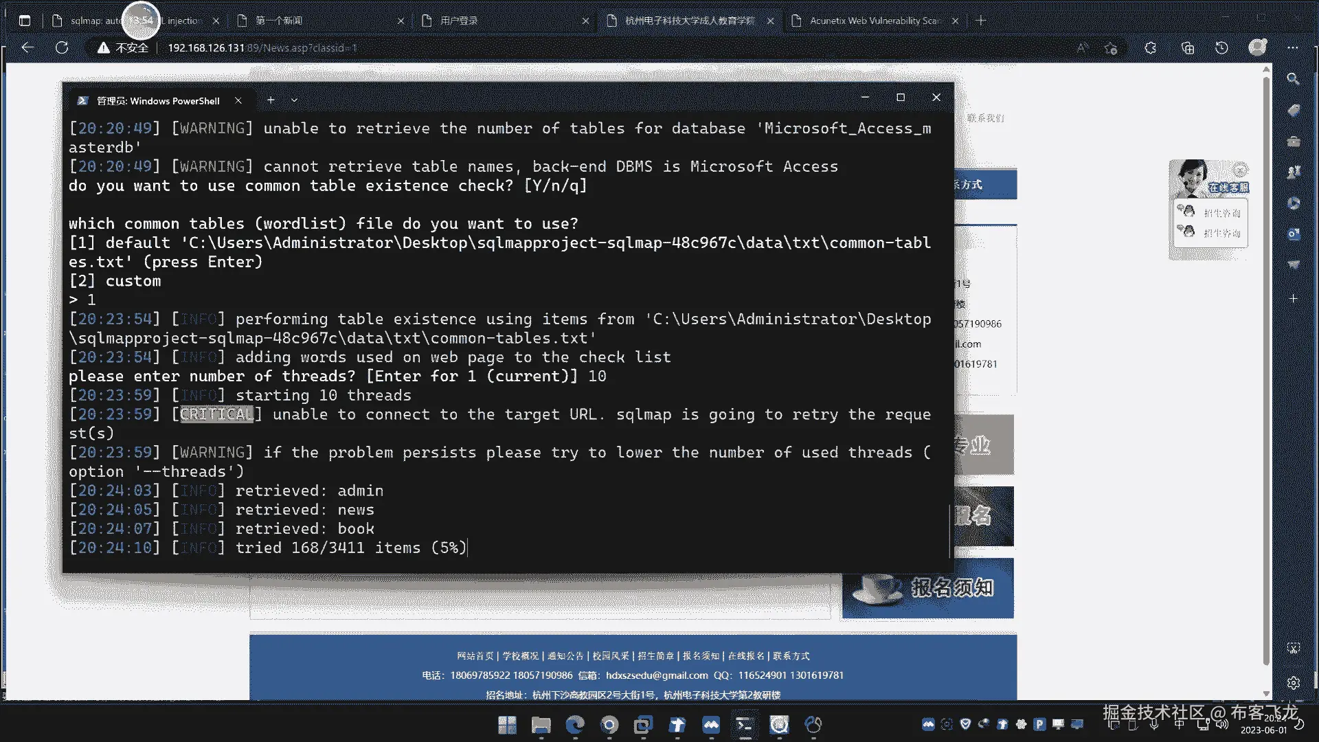 就这是把回来了好,那现在我去租他来,你看啊,从这里呢去当注入,然后呢他问你多少线程,默认最高线程十线程存个十好,这里呢就有31亿个这个表的去猜,你看就猜到了艾德米是吧,猜到60,看到没对吧。