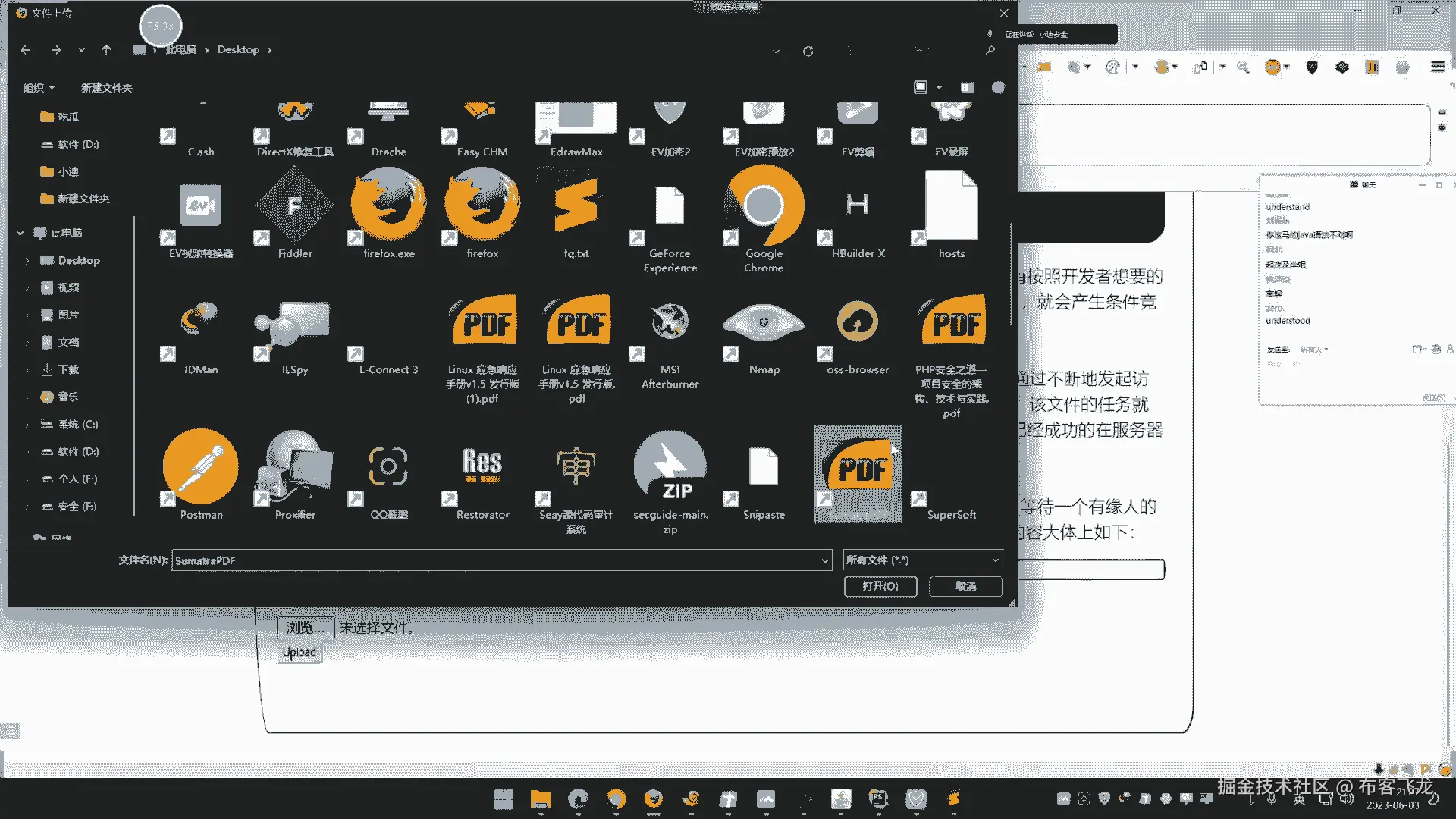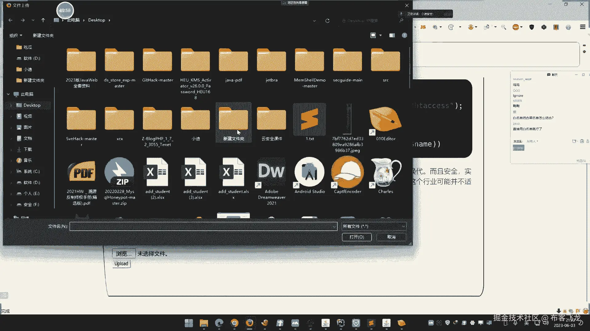 裡面就有文件上傳,那就很直接的文件上傳,你撤哪一個點就很難撤出來,安全漏洞,但是有時候你去設一個網站,你打開之後早半天都沒有發現文件上傳,少少少,突然少了一個他的子余名,或是少了一個端口。