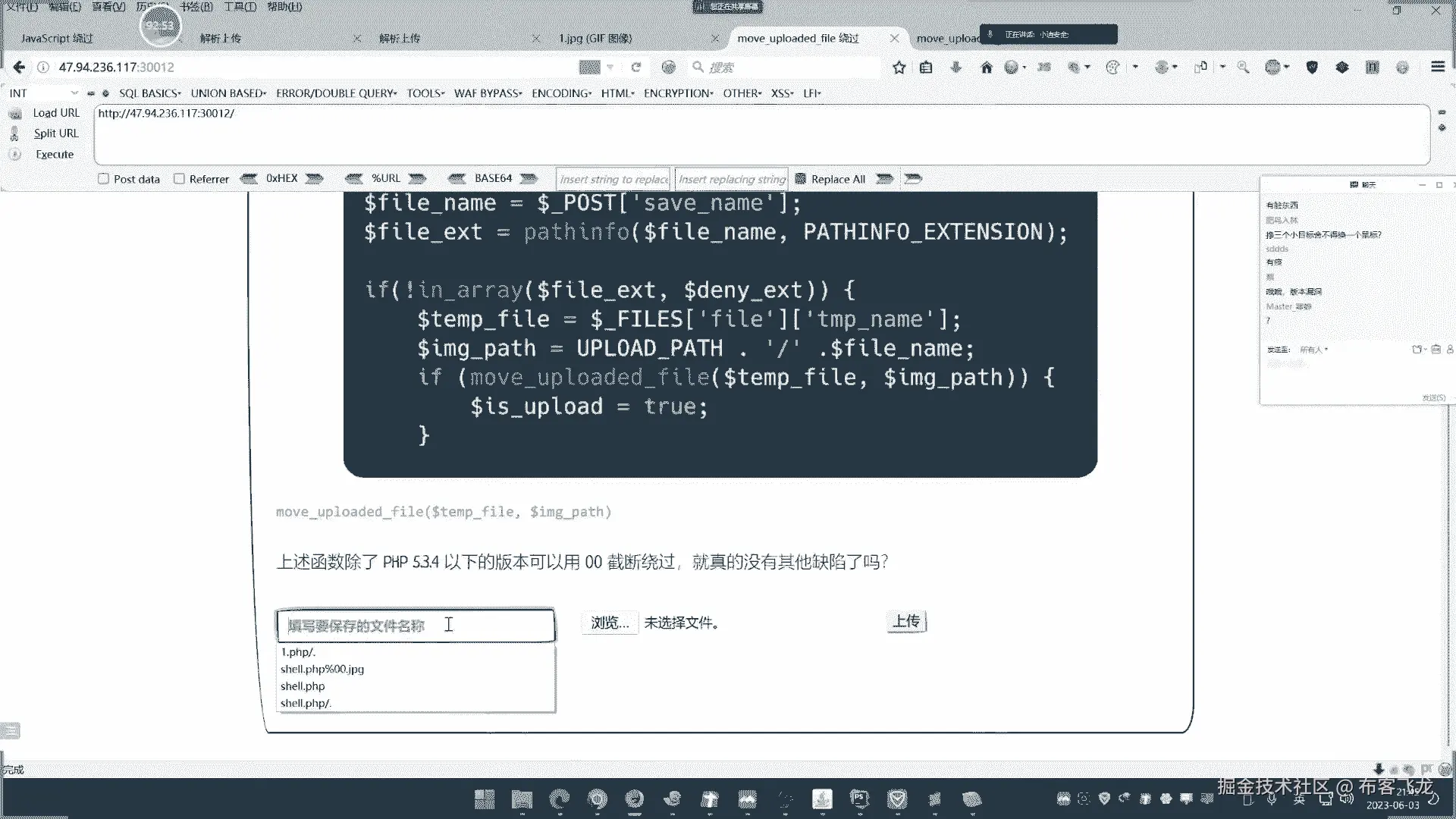 這個呢,是屬於,函數的漏洞,屬於這個叫moving upload file的漏洞,就你用到,這個函數的時候一定要注意,這個路徑如果,可空的話就是包存的文件名。