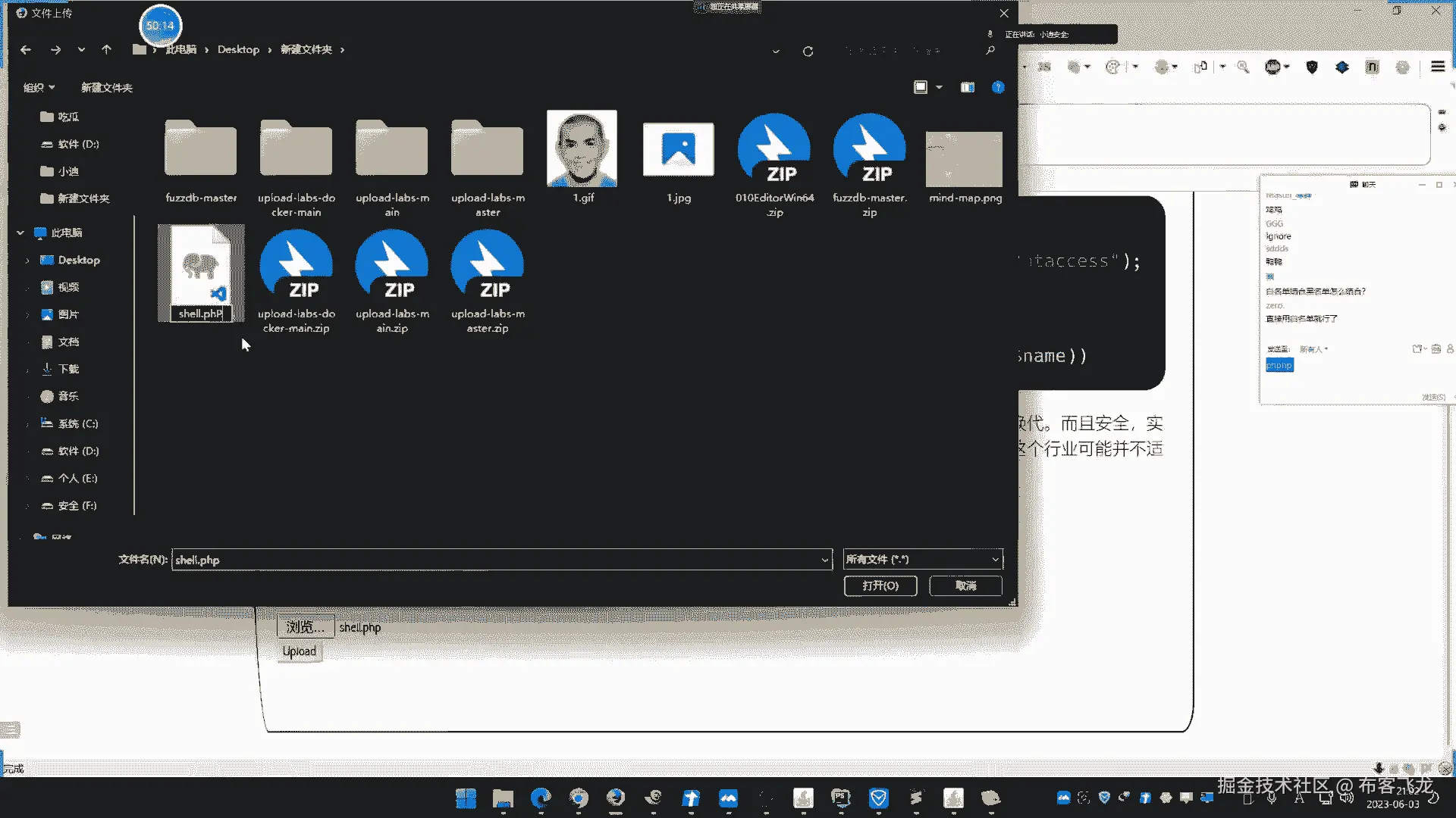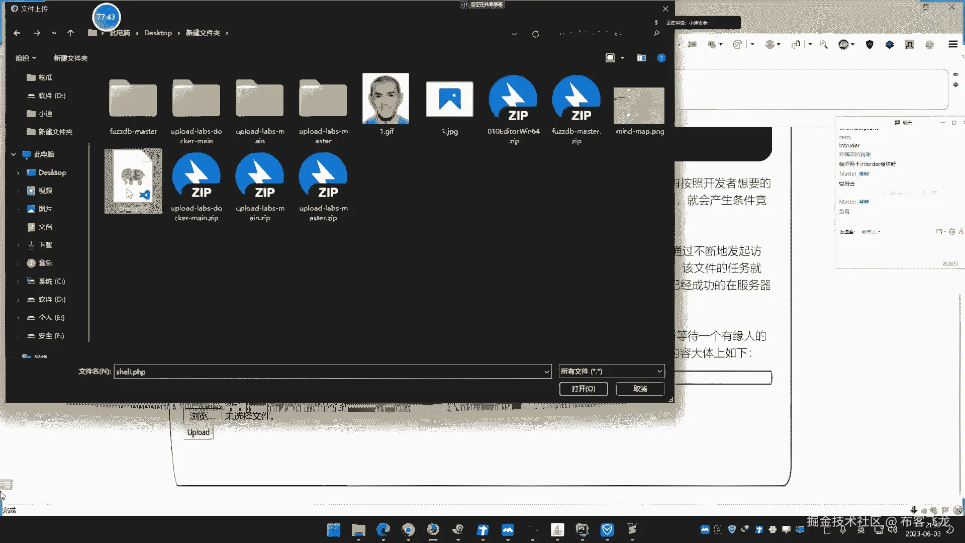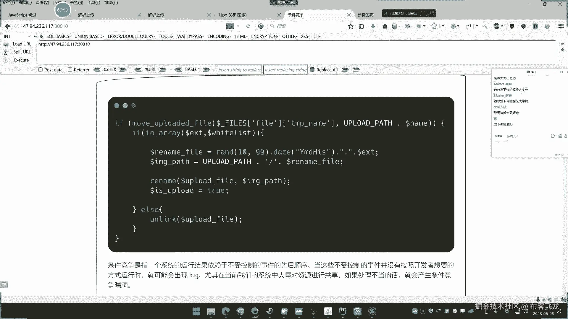 那上傳上去就是說,這個文件呢,還是在服務器的上面停留過的,就是在他停留的這個,那個區間呢,我們就趕緊去訪問他,訪問他呢就利用這個代碼,訪問及清潔文件的特性,是吧,然後訪問了就重新創建文件。