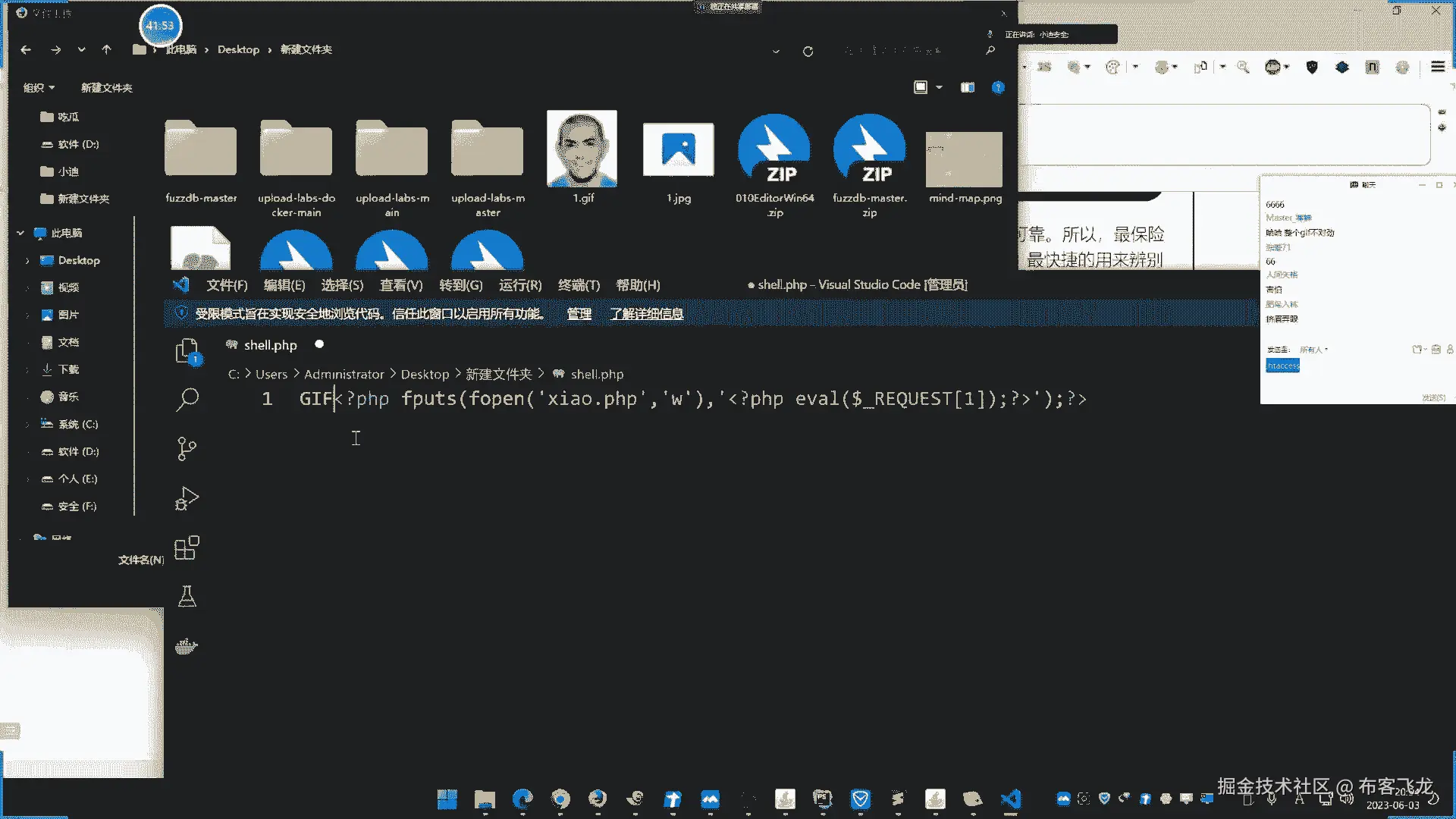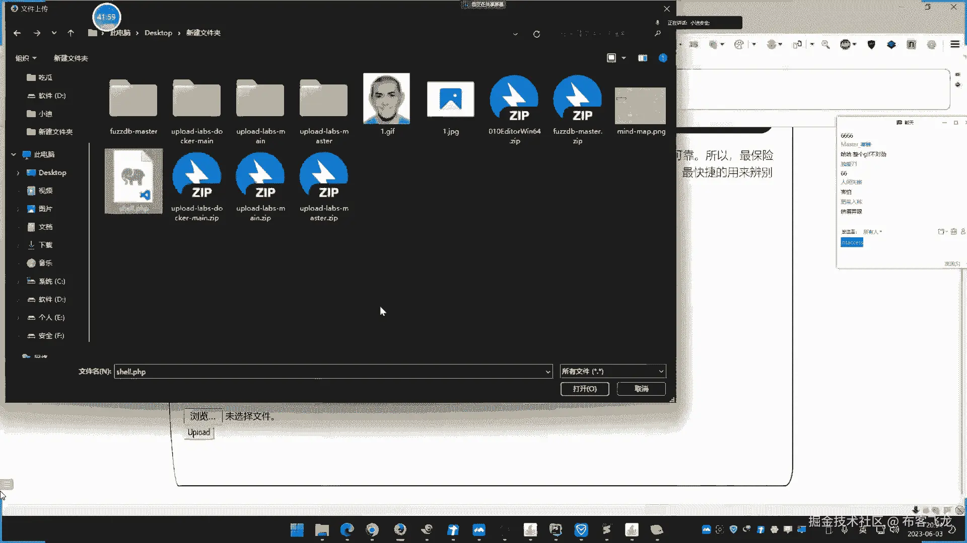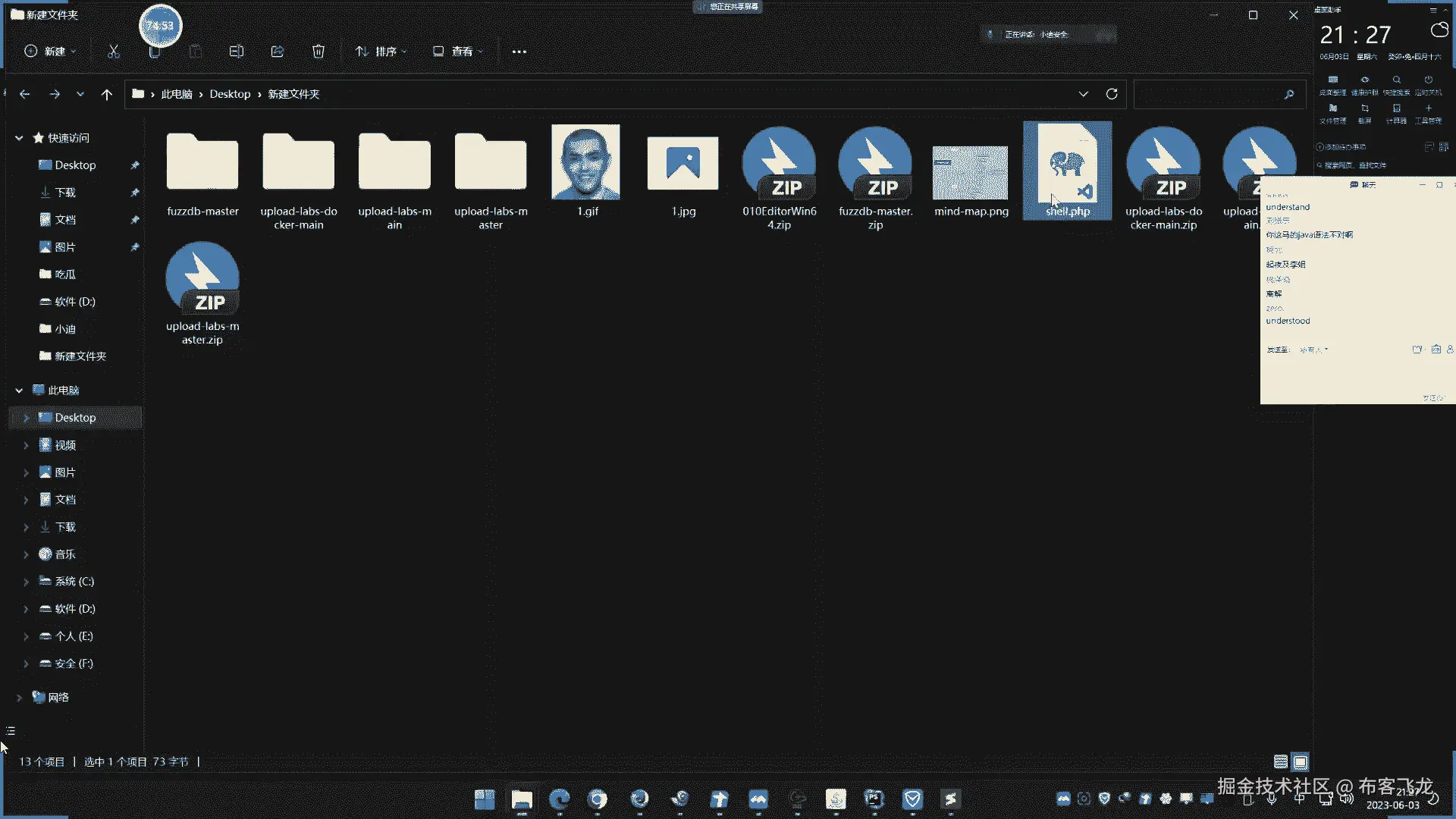 那上傳上去就是說,這個文件呢,還是在服務器的上面停留過的,就是在他停留的這個,那個區間呢,我們就趕緊去訪問他,訪問他呢就利用這個代碼,訪問及清潔文件的特性,是吧,然後訪問了就重新創建文件。