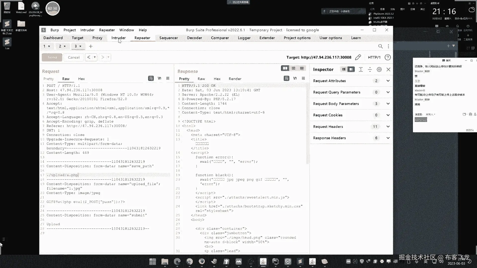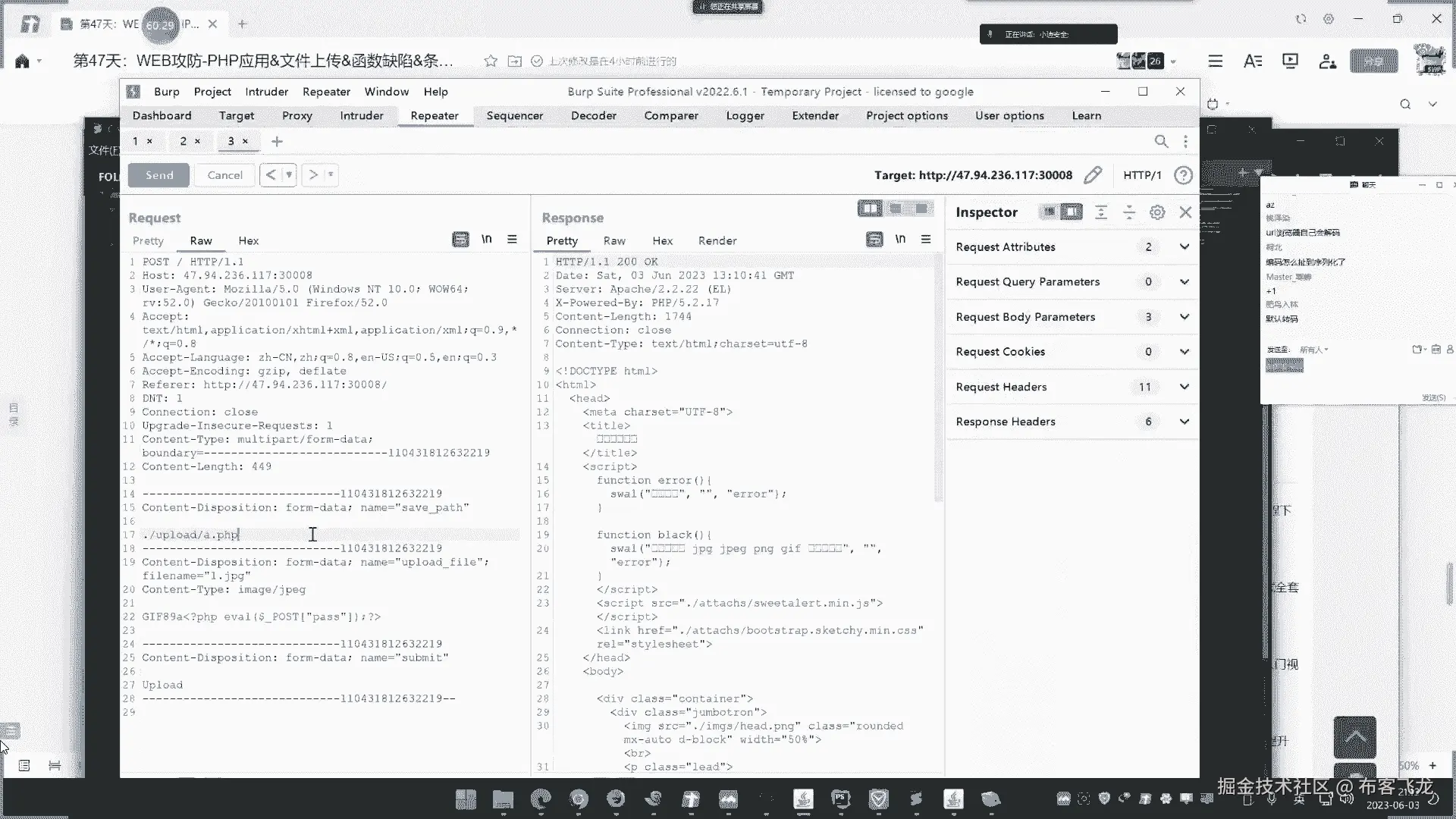 但是說實話這個文件上傳呢,就是文件上傳文件包含呢,我們拎當摘刀的時候在講,所以後面這個為什麼這樣操作呢,大家不用理解啊,我們後面再講文件上傳的時候呢,他只是考慮這個R4渲染。