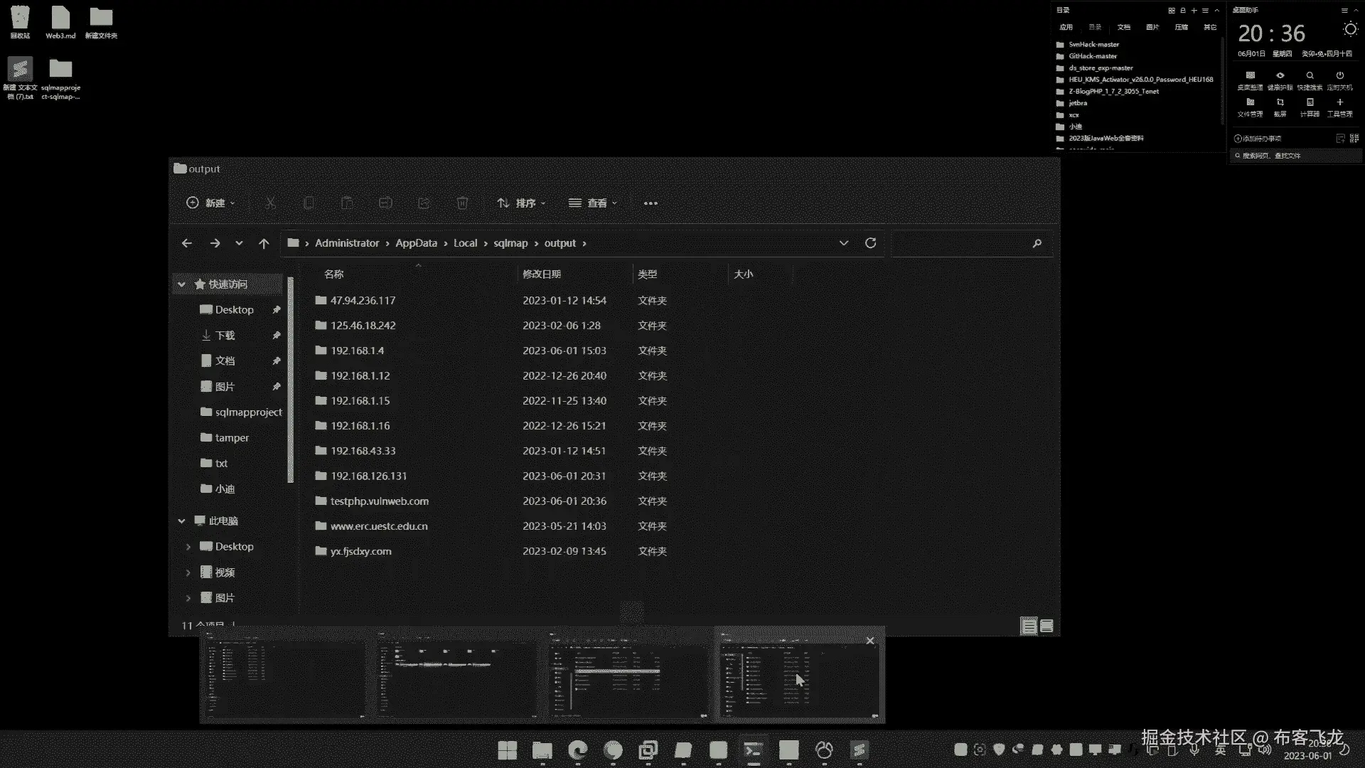 它都会保存那个目录,防止你下次查看,比如说里面保存猪肉的日志,保存注入的数据,保存注入的这个地址,他都帮你写上去啊,就会在这里呢创建一个啊,这个目录呢不是固定的啊,它会自动帮你创建。