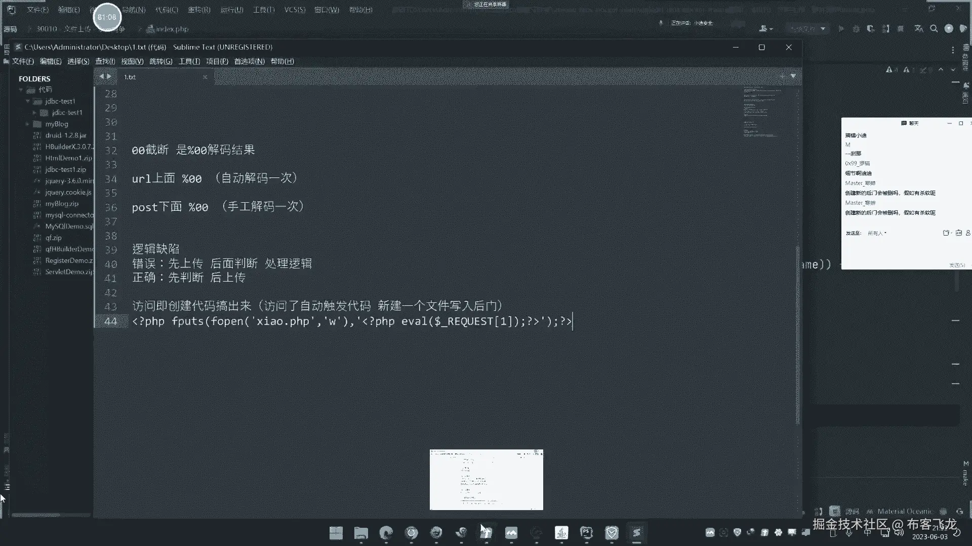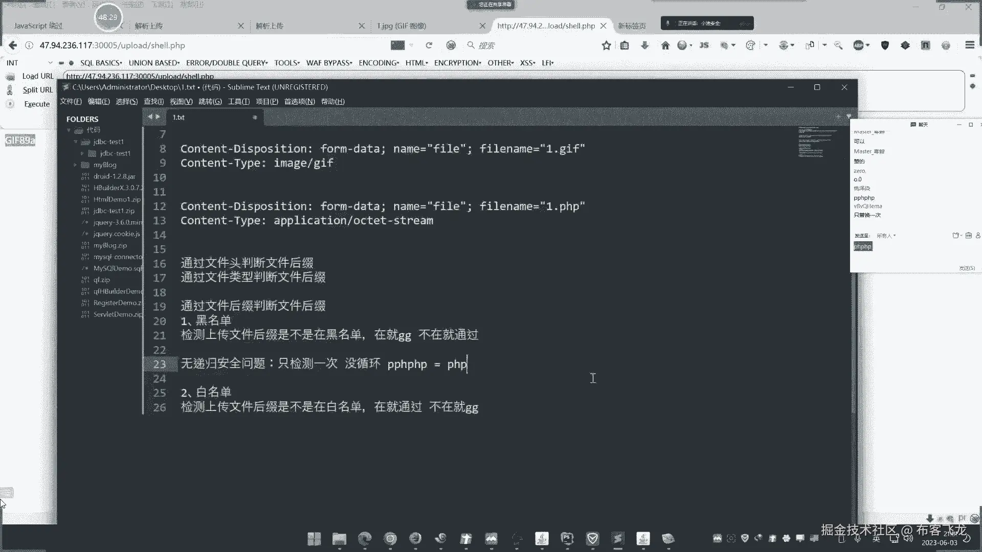 和代碼沒有關係,他的邏輯思路出了問題,並不是說你代碼,寫的不安全,說到這裡,希望大家能夠反复思考一下,以後呢即使說,上到java的時候,因為上java的話我不可能說,加到java我再給你講一遍文件上傳。