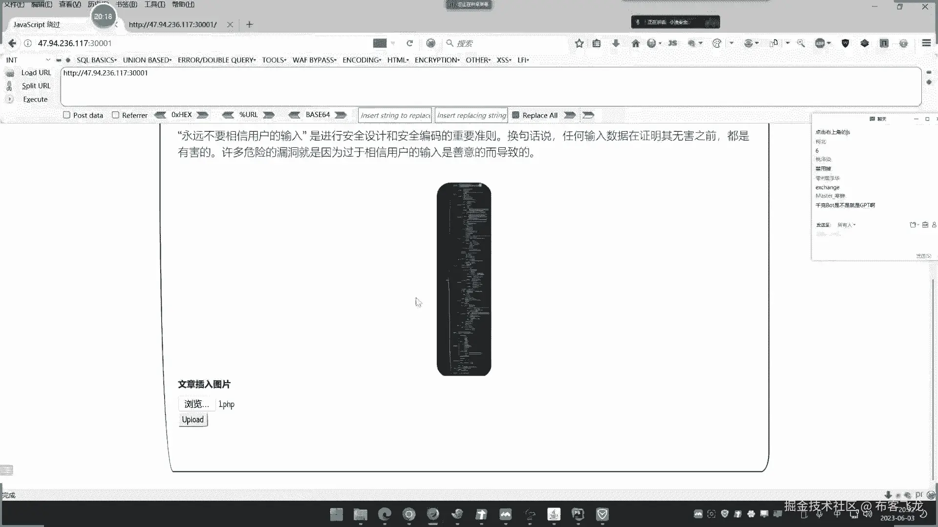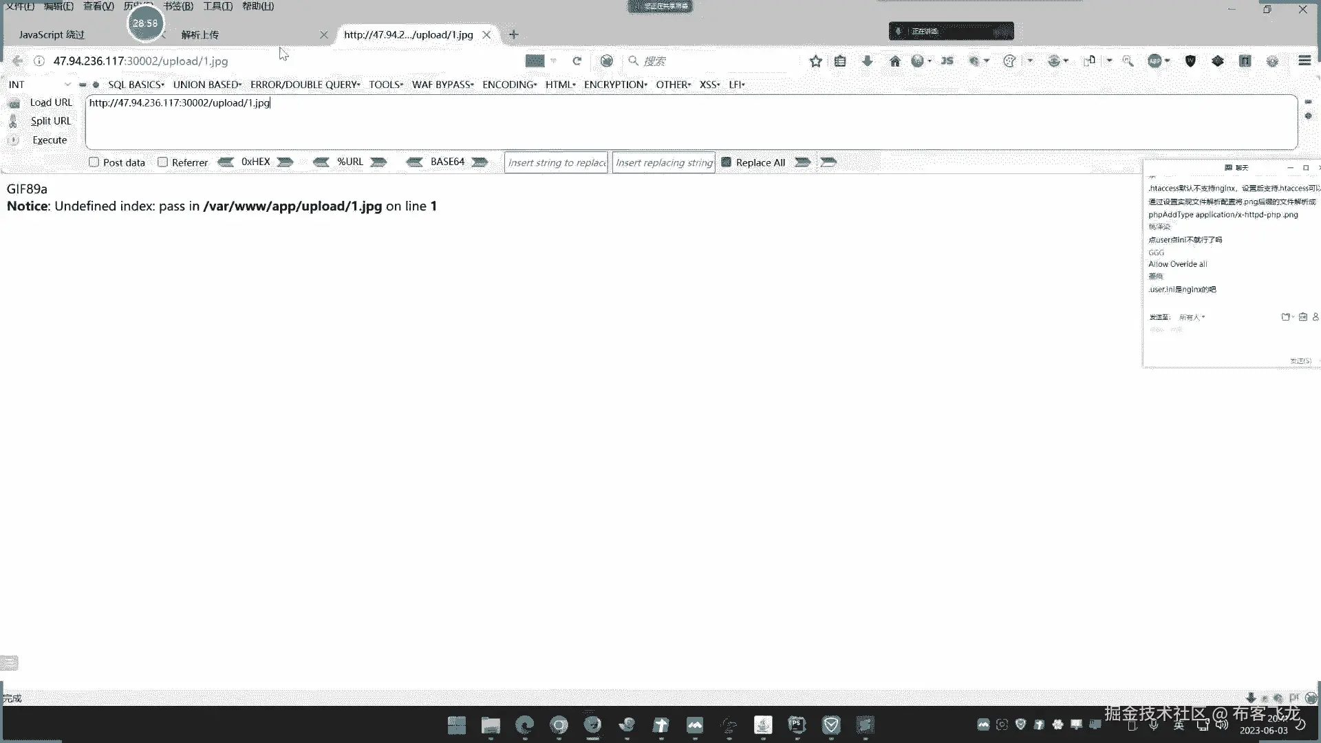 然後呢你再執行也沒用,就是因為接觸這個文件包含,用這個文件地址包含,去執行這個代碼,這個文件包含呢我們現在沒有講,這個是文件上傳講完馬上要講的,這個路徑呢,就是和這個文件上傳的一個結合。
