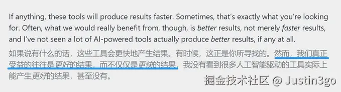 其中有一句话印象深刻:我们真正受益的往往是更好的结果,而不仅仅是更快的结果。