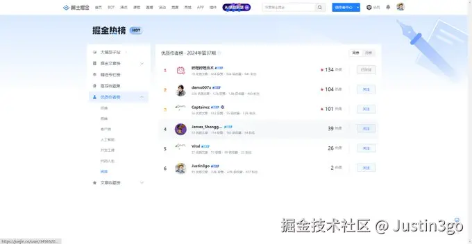 最近在掘金上发文章,发现自己的头像附近多了一个作者榜第6,然后点进去看,好的,这第6名俺不要也罢!🤡